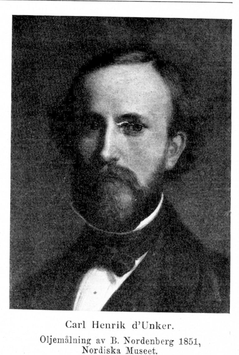 d'Unker (d'Unker-Lutzow), Carl Henrik (ej Henning), f. 19 febr. (ej 3 febr.) 1828 i Stockholm (Klara), d. 24 mars (ej 23 mars) 1866 i Düsseldorf. Föräldrar: ryttmästaren och kammarherren Carl Henning d'Unker och Anna Christina Brunstedt. Elev vid Nya elementarskolan i Stockholm vt. 1837, vid Hillska skolan vid Barnängen 1837—40, därefter vid Stockholms lyceum; sergeant vid Livgardet till häst 9 febr. 1844; avsked från reg. 29 okt. 1845; furir vid Svea livgarde 20 dec. 1845; avslutade gradpasseringen 20 april 1846; tjänstledig för idkande av studier 1846—47; deltog, efter att hava erhållit K. M:ts tillstånd, som frivillig i dansktyska kriget 1848—49; underofficer vid danska livgardet till fot (Livgarden) 10 juni 1848; befordrad till underlöjtnant 11 aug. s. å.; avsked ur dansk krigstjänst 31 aug. 1849; avsked från furirbeställningen vid Svea livgarde 9 nov. 1849; underlöjtnant i armén 4 dec. s. å. Studerade med understöd av konung Oskar I vid konstakademien i Düsseldorf okt. 1851—juli 1853; konstnärlig verksamhet i hemlandet omkr. ett år; återvände 1854 till Düsseldorf där han var verksam som genremålare och vistades till sin död med avbrott endast för en del under åren 1856 och 1857 företagna studieresor i Westfalen, Holland och Belgien, ett besök i Paris samt en tids vistelse i Sverige, den senare 1865; led. av konstakademien i Amsterdam 9 febr. 1859; LFrKA 1860; K. hovmålare 1860; professors titel 16 sept. 1865.