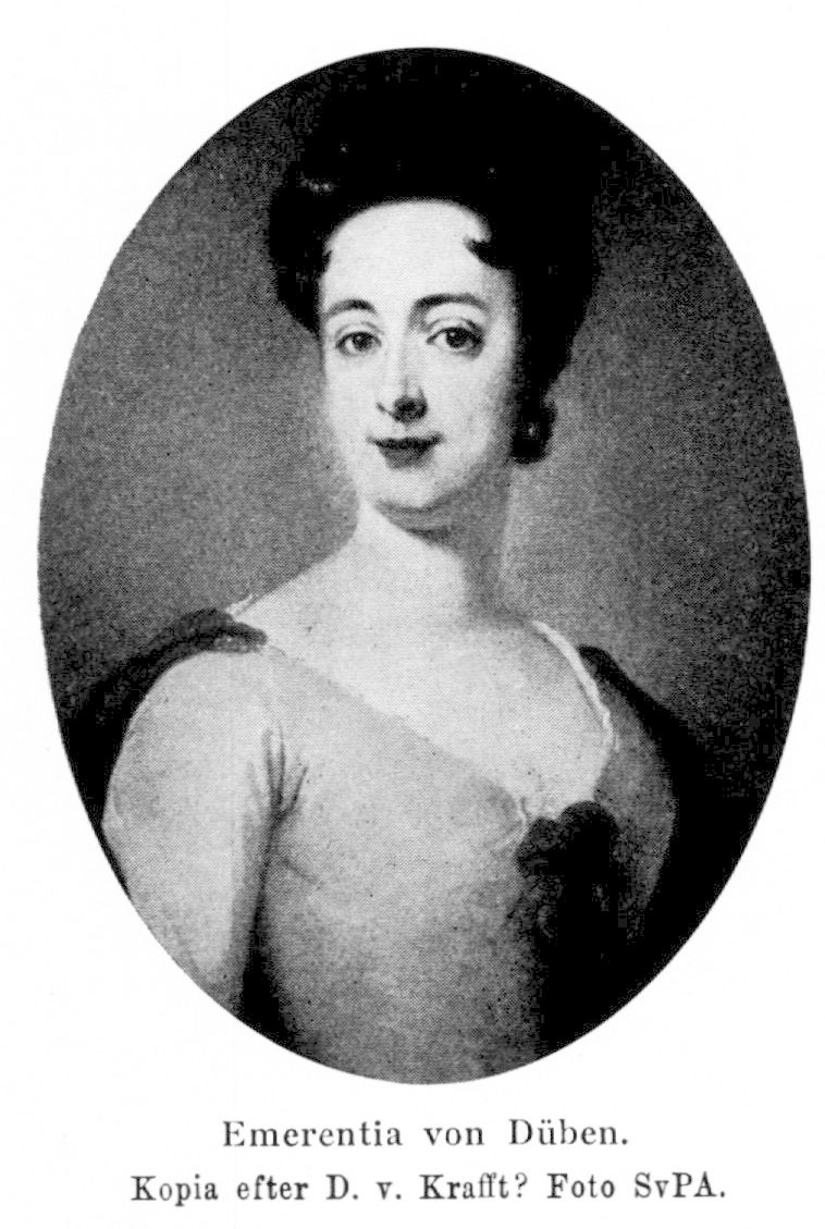 Emerentia Düben, von, https://sok.riksarkivet.se/sbl/artikel/17742, Svenskt biografiskt lexikon (art av G. Jacobson.), hämtad 2026-04-04.