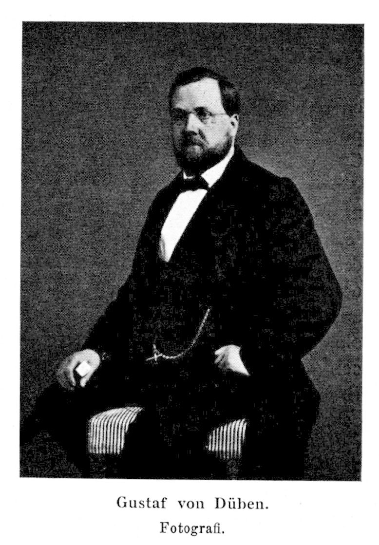 Gustaf W J Düben, von, https://sok.riksarkivet.se/sbl/artikel/17745, Svenskt biografiskt lexikon (art av C. D. Josephson, Ture Petrén, Bengt Hildebrand.), hämtad 2026-04-05.