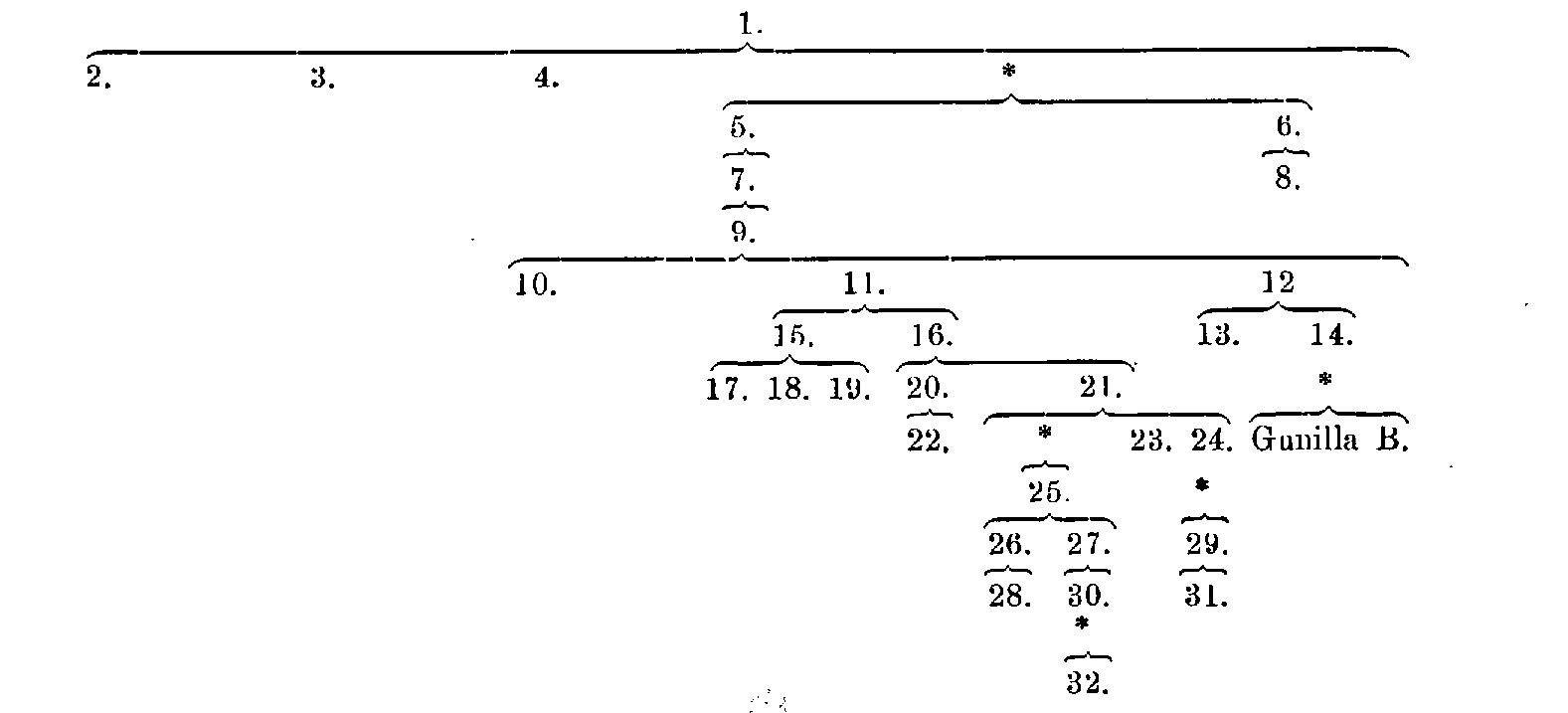 Bielke, gammal svensk adelssläkt, som redan vid sitt första framträdande i källorna år 1283 tillhörde den högsta världsliga aristokratien och därefter utan avbrott i ett halvt årtusende spelade en synnerligen framstående roll i Sveriges historia. Den saknade under medeltiden släktnamn men upptog på 1500-talet namnet. B. efter den urgamla vapenbilden: två bjälkar (i ett brev till danske riddaren Anders Bille av år 1546 skriver sig den nedan nämnde Nils Pederson till Åkerö »Niels Bielke», vilket torde vara det äldsta kända exemplet på att en medlem av ätten använt det sedan vedertagna släktnamnet). Släktens stamort är med säkerhet Småland och kan måhända närmare bestämmas till Västbo härad i nämnda landskap. I sydvästra Västbo (Långaryds och Villstads socknar) och i en närgränsande Hallandssocken (Torup) äro de gårdar belägna, vilka tidigast kunna konstateras ha varit i ättens besittning, och på Dannäs' gård och socken i häradets sydöstra del häntyder sannolikt det tillnamn Dannæs (Dannes), som en av de äldsta kända släktmedlemmarna antog (se nedan). Ättens egentliga huvudgods var eljest alltifrån 1300-talets förra hälft Kråkerum i Mönsterås' socken, Kalmar län, som sedan i århundraden var i dess ägo. Släktens historia begynner med bröderna Ture Kettilsson (1283–1322) och Nils Kettilsson (1295–1304). Om deras fader Kettil känna vi intet annat än förnamnet; en gissning, att han skulle vara identisk med den småländske frälseman vid namn Kettil Pedersson, som omtalas i ett par brev av 1266 och 1268, är troligen förfelad. Både Ture och Nils Kettilssöner voro riddare, men på det politiska området synes blott den förstnämnde (se nedan 1) ha gjort sig gällande. Nils Kettilssons linje utdog på manssidan redan med hans son, riddaren och riksrådet Gustaf Nilsson, lagman i Tiohärad, d 1341 eller 1342, och Ture Kettilsson är sålunda stamfader för alla de följande Bielkarna. Han efterlämnade fem söner, av vilka tre: Erik Turesson, Sten Turesson och Nils Turesson (se nedan 2, 3 och 4) intogo framskjutna ställningar under konung Magnus Erikssons regering. Jämväl de båda andra sönerna, riddaren Nils Dannæs eller Dannes (1325–57) och väpnaren Bengt Turesson (1341–59), nämnas någon gång som medlemmar av rådet, men ingendera tillhörde de politiska förgrundsfigurerna. Den förre bodde i Värend, där han torde ha haft sin sätesgård någonstädes i Norrvidinge eller Uppvidinge härader, men hade jordbesittningar också i andra delar av landet och possederade bl. a. (till år 1352) det bekanta herresätet Nynäs i Ösmo socken på Södertörn, som han fått med sin första hustru. Då han år 1325 för första gången spåras i bevarade källor, kallas han ännu rätt och slätt Nils Turesson (utan tillnamn) men nämnes sedan undantagslöst Nils Dannæs (Dannes) med bortläggande av fadersnamnet. Anledningen till namnförändringen var tvivelsutan, att han — ett förhållande, som även eljest i visserligen ytterst sällsynta undantagsfall förekom i Sverige under medeltiden — hade en (sannolikt yngre) broder med samma dopnamn som han (se ovan), från vilken han kunde ha behov av att skilja sig genom ett särskilt igenkänningsnamn (något släktnamn var Dannæs icke, och det ärvdes ej av hans son). Herr Nils var redan 1325 gift med Ingeborg Laurensdotter, dotter av riddaren Laurens Botolfsson (två stjärnor) och fru Iliana. Denna fru Ingeborg åtföljde, enligt uppgift mot mannens vilja, den heliga Birgitta på hennes år 1349 företagna Romfärd och dog under nedresan i Milano. Nils Dannæs gifte sedan om sig med Katarina Pedersdotter, d omkr. 1404, troligen dotter av den småländske frälsemannen Peder Karlsson (lejon) och efter Nils' död omgift 1) med Niklis Bengtsson (lejonansikte), 2) med Birger Knutsson Trolle (se om henne närmare artikeln Bengt Niklisson). I detta senare äktenskap hade herr Nils, som nämnes sista gången 20 mars 1357 (B. 15, f. 112 v., RA), en son riddaren Erik Nilsson, d utan söner 1402 (före 15 mars). — Medan övriga från Ture Kettilsson härstammande släktlinjer snart utslocknade, efterlämnade den ovannämnde Bengt Turesson i sitt gifte med den heliga Birgittas systerdotter Ingeborg Magnusdotter (lejon), d 1390 (före 28 juni), tvenne söner: marsken Sten Bengtsson och riksrådet och Upplandslagmannen Ture Bengtsson (se nedan 5 och 6), som var för sig blevo stamfäder för en talrik avkomma. Den senares sista manliga descendenter voro sonsönerna Ture Stensson, d 1439, och Knut Stensson, d 1451 (före 11 nov.), båda riksråd och Upplandslagmän, söner av konung Karl Knutssons styvfader, riksrådet. Sten Turesson (se nedan 8). Alla följande släktmedlemmar härstamma från den ovannämnde Sten Bengtssons son riksrådet och Ölandslagmannen Ture Stensson (se nedan 7) och dennes son marsken Ture Turesson, konung Karls och Sten Sture den äldres samtida (se nedan 9). Tre av Ture Turessons söner: Sten Turesson, Peder Turesson och Erik Turesson (se nedan 10, 11 och 12) voro bemärkta medlemmar av riksrådet under den senare Sturetiden. Den förstnämnde dog barnlös; från de båda senare däremot utgå de tvenne släktgrenar, på vilka ätten under den äldre Vasatiden fördelar sig. Bland Erik Turessons söner märkas riksråden Ture Eriksson och Axel Eriksson (se nedan 13 och 14). Den senares son, riksrådet och ståthållaren över Östergötland Johan Axelsson till Liljestad, d 22 apr. 1576, blev fader till Johan III:s drottning Gunilla B. (se denna) och till riksrådet Axel B., av vilka den sistnämnde avled 1597 såsom den siste manlige medlemmen av Erik Turessons släktgren. Peder Turessons linje visade sig desto livskraftigare, och av hans söner fingo kammarrådet Nils Pedersson och riksrådet Ture Pedersson (se nedan 15 och 16) var för sig talrika ättlingar. A) Nils Pederssons linje: Nils Pederssons söner, riksråden Hogenskild B., friherr