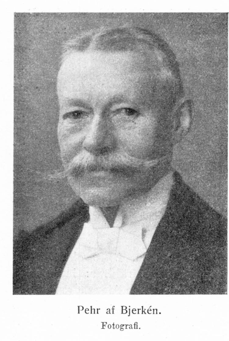 3. Pehr Konstantin af Bjerkén, f. 19 okt. 1859 i Värnamo, d 30 sept. 1919 i Stocksund. Föräldrar: lantmäteriauskultanten Brynte Karl Gustav af Bjerkén och Alexandra Matilda Vilhelmina Lagergren. Avlade mogenhetsexamen i Jönköping 5 juni 1878: student i Uppsala 13 sept. 1879; fil. kand. 30 jan. 1882; fil. lic. 21 maj 1889; disp. 28 maj 1890; fil. doktor 31 maj s. å.; studerade fysik vid universitetet i Freiburg vintersemestern 1890–91 och elektroteknik m. m. vid tekniska högskolan i Berlin (Charlottenhurg) sommarsemestern 1891, vintersemestern 1891–92 och sommarsemestern 1894. Amanuens vid Uppsala universitets fysiska institution 1 juli 1884–30 juni 1886; anställd vid prövnings- och försökslaboratoriet hos Siemens & Halske i Charlottenhurg 2 jan. 1892–30 sept. 1894; lärare i allmän fysik och elektroteknik vid h. tekniska institutet i Köthen (Anhalt) 1 okt. 1894–31 aug. 1897; föreståndare för prövnings- och försökslaboratoriet hos Allgemeine elektricitäts-gesellschaft i dess kabelwerk Oberspree 1 sept. 1897–31 aug. 1899; lektor i allmän fysik vid tekniska högskolan i Stockholm 30 maj 1899 och professor i fysik därstädes fr. o. m. ht. 1911; upprätthöll undervisningen i elektroteknik vid tekniska skolans i Stockholm montörkurs läsåret 1899–1900; e. o. lärare i elektricitetslära vid Stockholms navigationsskola 7 sept. 1900. RVO 1909.