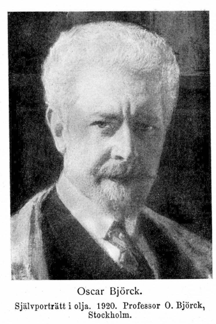 Björck, Gustaf Oscar, f. 15 jan. 1860 i Stockholm. Föräldrar: gulddragaren Klas Gustav Albert Björck och Augusta Ulrika Pihlgren. Åtnjöt skolundervisning i Beskowska och Klara skolor; började vid tretton års ålder teckna i Konstakademiens, läroverks principskola och. erhöll undervisning i målning av E. Perséus från 1876; elev vid akademiens antikskola 26 mars 1877 och vid modellskolan hösten 1878; erhöll K. medaljen mars 1882; erhöll statens stipendium för figurmålare 20 apr. 1883, förnyat 12 mars 1886; vistades för konststudier utomlands 1883–88. Extra lärare vid Konstakademiens läroverk 1889; innehade åtskilliga förordnanden som professor därstädes under åren 1890–98; kommissarie vid internationella utställningen i München 1892; ledamot i kommittéerna för 1893 års världsutställning i Chicago 10 mars 1892–5 dec. 1894, för 1897 års utställning i Stockholm 27 apr.–6 dec. 1894 (ledamot i förvaltningsutskottet och konstkommittén samt kommissarie för konstavdelningen) samt i kommittén för Sveriges deltagande i 1900 års världsutställning i Paris , 16 juli 1897–9 juli 1898; professor vid Konstakademien 1 juli 1898; v. ordförande i kommittén för baltiska utställningen 1914 (chef för konstavdelningen); ledamot av kommittén för världsutställningen i San Francisco 1915; ordförande i kommittén för den svenska konstutställningen i Köpenhamn 1916. LFrKA 1889 (v. preses 14 dec. 1918); RVO 1892; RNO 1897; KVO2kl 1910; KVO1kl 1914; är dessutom ledamot av danska Konstakademien och Secessionen i München samt innehar ett stort antal utländska ordnar.