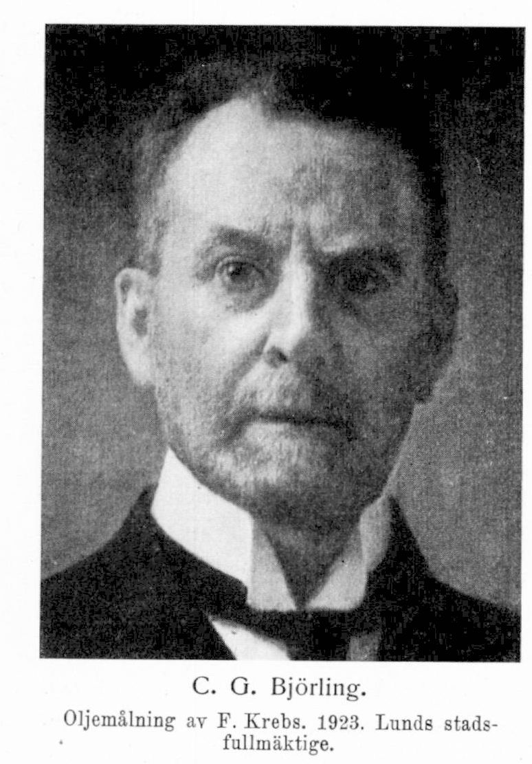 4. Carl Georg Emanuel Björling, den föregåendes son, f. 16 sept. 1870 i Halmstad. Elev vid karolinska katedralskolan i Lund vt. 1880–ht. 1883; åtnjöt enskild undervisning; avlade mogenhetsexamen vid Kristianstads h. allmänna läroverk 28 maj 1887; student vid Lunds universitet 16 sept. s. å.; jur. fil. kand. 31 maj 1888; jur. utr. kand. 29 apr. 1891; jur. utr. lic. 16 maj 1896; jur. utr. doktor 30 maj s. å. Auskultant i hovrätten över Skåne och Blekinge 13 juni 1892; jur. fakultetens notarie 11 jan. 1894–21 jan. 1896; e. o. amanuens vid universitetets kansli 17 mars 1894–ht. 1897; docent i rättshistoria 12 apr. 1894 och tillika i romersk rätt 5 juli s. å.; e. o. notarie i Svea hovrätt 20 aug. s. å.; förvaltade häradshövdingämbete dels i Ingelstads och Järrestads, dels i Gärds och Albo härads domsaga och förrättade därunder bl. a. två allmänna tingssammanträden 1896; förestod e. o. professuren i romersk rätt och rättshistoria från 1 sept. 1896; uppförd i andra rummet å förslag till e. o. professuren i romersk rätt, juridisk encyklopedi och rättshistoria vid Uppsala universitet 31 okt. s. å.; e. o. professor i romersk rätt och rättshistoria vid Lunds universitet 17 dec. 1897; förestod professuren i civilrätt från 1 febr. 1900 och uppehöll tillika sitt eget e. o. professorsämbete till 21 mars s. å.; professor i civilrätt 21 juni 1901; adjungerad ledamot i hovrätten över Skåne och Blekinge 15 juni–14 juli 1903; biträdde universitetskommittén vid behandlingen av frågan om studietidens begränsning inom de juridiska fakulteterna m. m. 5 febr.–12 sept. s. å.; ledamot av Lunds stads drätselkammare s. å.–1907 (ordförande 1905–07); stadsfullmäktig 1907–22 (ordförande från 1911); adjungerad ledamot i Svea hovrätt 1 juni–5 aug. 1910; förordnad att biträda tobaksskattekommittén 1911 (bet. 2 sept.); inspektor för h. elementarskolan för flickor i Lund 1912–22; ordförande i Lunds landstormsbefälsförening från 1913 och i den kommunala arbetslöshetskommittén för Lund 1914–22; förordnad att biträda lagberedningen i dess arbete 6 mars 1914–23 aug. 1918; sakkunnig angående ändringar i gällande universitetsstatuter och stadgar för karolinska institutet 9 mars–23 juli 1914 samt rörande undervisningen vid universiteten och karolinska institutet i anledning av nya värnpliktslagen 16 nov.–19 dec. s. å.; ledamot av styrelsen för Kulturhistoriska föreningen för södra Sverige 16 juni 1917 (ordförande 16 juni 1923); ledamot av styrelsen för föreningen Det gamla Lund från 1918; biträdde högskolornas löneregleringskommitté 9 dec. 1920–29 nov: 1921; ordförande i styrelsen för h. elementarskolan för flickor i Lund 1923. RNO 1908; LLHS 1918; KVO2kl 1919.
