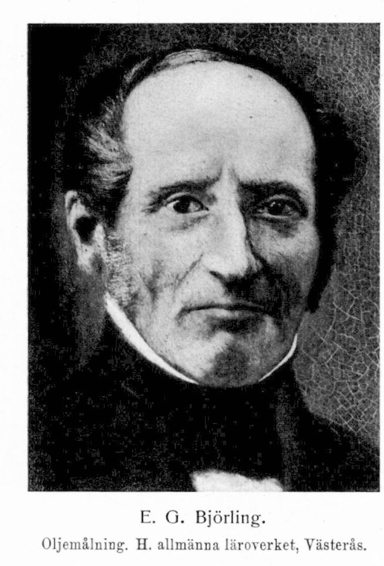 2. Emanuel Gabriel Björling, f. 2 dec. 1808 i Västerås, d 3 nov. 1872 därstädes. Föräldrar: rådmannen och handlanden Karl Adolf Björling och Anna Margareta Lagerwall. Student i Uppsala 17 okt. 1826; disp. 15 nov. 1828 (De idea ecclesiæ ejusque in religione momento, p. posterior; pres. K. E. Fahlcrantz); fil. kand. 21 dec. 1829; disp. 22 maj 1830 (De motu corporum rigidorum, p. X; pres. J. Svanberg); fil. magister 16 juni 1830. Lärare i Hillska skolan å Barnängen vid Stockholm 9 febr. 1831; rektor därstädes 28 juli 1835; tillika docent i mekanik vid Uppsala universitet 4 juni 1836, överflyttade till Uppsala 1840; uppfördes på tredje förslagsrummet till mathematum inferiorum professionen, vid Uppsala universitet 18 maj 1842; docent i samma ämne 28 apr. 1843; lektor i matematik i Västerås läroverk 28 febr. 1845 (tillträdde 1847); tjänstgjorde intill förflyttningen till Västerås dels som docent vid universitetet, dels som lärare vid Uppsala lyceum; rektor vid Västerås läroverk 1842–50 och 1855–62; ledamot av kommittén angående stiftsvis inrättade pensionsanstalter för folkskollärare (bet. 25 maj 1855) och av kommittén angående ordnandet av pensionsväsendet för folkskollärare och deras änkor och barn 22 apr.–19 dec. 1864. Erhöll av Vetenskapsakademien den Feraierska belöningen 1846, 1847, 1853, 1856 och 1858; LVS 1845; LVA 1850; RNO 1858.