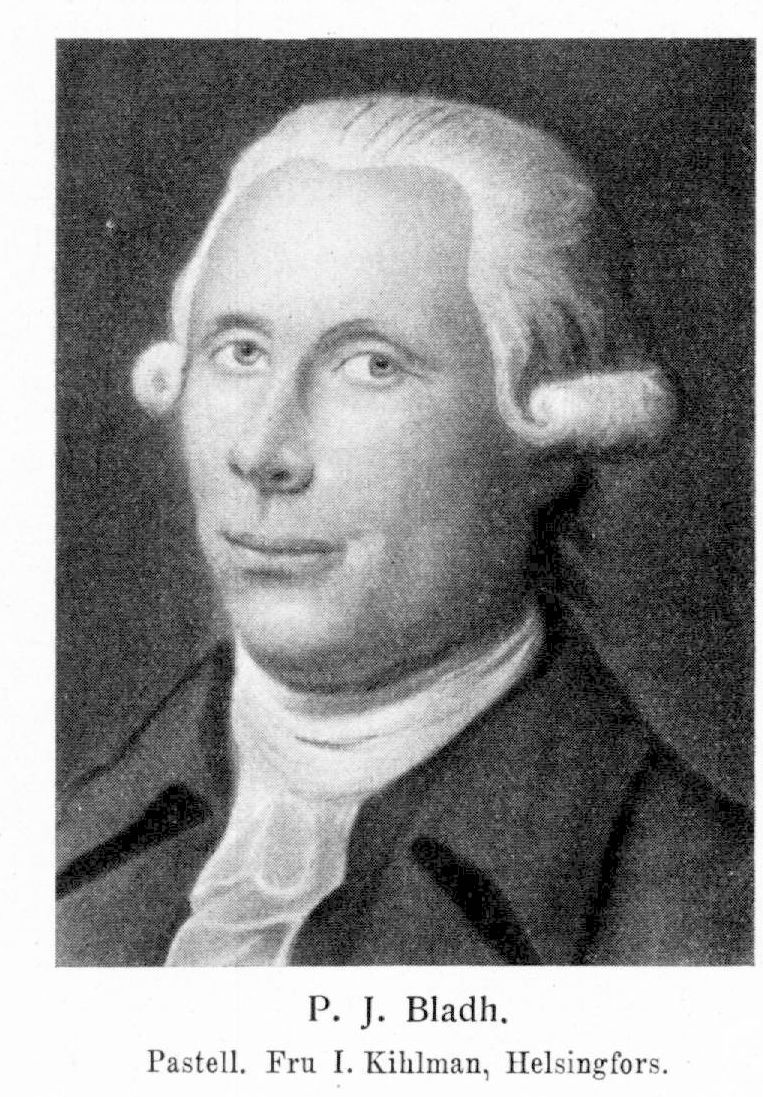 2. Petter Johan Bladh, den föregåendes son i första giftet, f. 3 dec. 1746 i Vasa, d 1 mars 1816 på Benvik. Elev vid trivialskolan i Vasa 4 apr. 1758; inskriven vid Åbo akademi 16 mars 1763. Anställd i sin faders affär i Vasa 1764; assistent 1766 i Ostindiska kompaniet, där han tjänstgjorde med avbrott 1770–72, då han auskulterade i bergskollegiet (antagen 11 dec. 1770), samt avancerade till fjärde, tredje, andre och förste superkargör; tog avsked 1784 och slog sig ned i Finland på den fäderneärvda egendomen Benvik; verksam som affärsman och industriidkare i Kaskö; ledamot av borgarståndet vid riksdagarna 1789 och 1792 samt vid Borgå lantdag 1809, då han var ledamot i civil- och ekonomi- samt expeditionsutskottet; av samtliga stånd föreslagen till ledamot av regeringskonseljen för Finland 15 och 16 juli 1809; förordnades till ledamot av regeringskonseljens ekonomidepartement och till adjoint hos chefen för kansliexpeditionen 6 aug. s. å. (g. st.) men entledigades på egen begäran 30 dec. s. å. (g. st.); erhöll kommerseråds titel 2 aug. 1810 (g. st.) men avsade sig denna utmärkelse; erhöll kansliråds titel 12 jan. 1812 (g. st.). LFS (enl. sällskapets tryckta handlingar 1776); LVA 1779; ledamot av Patriotiska sällskapet 1790; RRStVl04kl 1812.