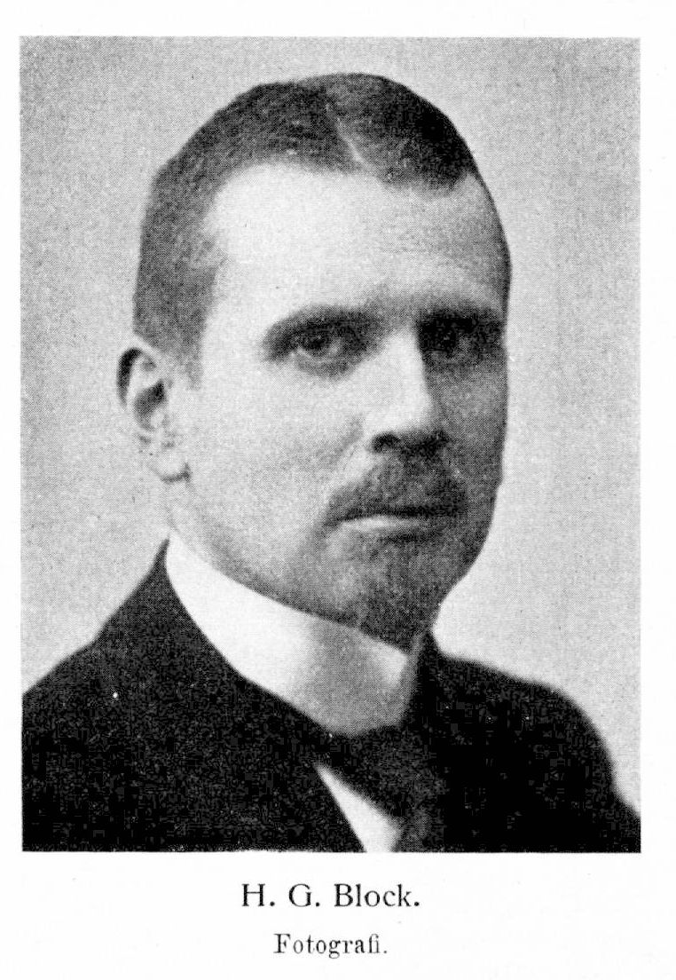 Block, Henrik Gabriel, f. 21 mars 1882 i Örby. Föräldrar: kyrkoherden sedermera kontraktsprosten Anders Herder Block och Ulvhild Cecilia Sparre. Intogs vid Lunds h. allmänna läroverk vt. 1894 och vid Göteborgs latinläroverk ht. 1896; avlade mogenhetsexamen därstädes 6 juni 1900; inskrevs vid Lunds universitet 15 sept. s. å.; fil. kand. 28 maj 1903; inskrevs vid Stockholms högskola 2 febr. 1905 och idkade studier därstädes, t. o. m. vt. 1906; fil. lie. i Lund 13 nov. 1907; disp. 18 sept. 1909; fil. doktor 31 maj 1910; har företagit studieresor till Frankrike, Tyskland och England. E. o. amanuens vid astronomiska observatoriet i Lund 10 sept. 1902−31 dec. 1904; assistent i astrofotografi vid Stockholms observatorium 21 jan.−31 dec. 1905; tillika amanuens i astronomi vid Stockholms högskola under samma tid; amanuens vid astronomiska observatoriet i Lund 1 sept. 1906−31 jan. 1908 och 1 febr.−31 aug. 1909; amanuens vid Lunds universitets matematiska seminarium från 14 juli 1908 med undantag av tiden 1 apr.−15 okt. 1913; docent i astronomi vid Lunds universitet 2 okt. 1909; uppförd å tredje förslagsrummet till professor i matematik vid Lunds universitet. 18 maj 1912 och å andra förslagsrummet till professor i matematik vid tekniska högskolan 3 febr. 1913; professor vid Chalmers tekniska institut 23 sept. 1915. LVVS 1918. — Ogift.