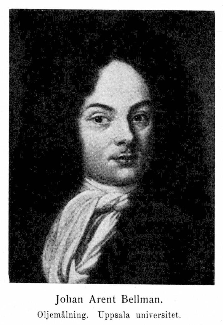 1. Johan Arent Bellman, f. 1664 i Stockholm (döpt 7 febr.), d 28 nov. 1709 därstädes. Föräldrar: skräddarmästaren Martin Bellman och Barbara Klein. Elev vid Tyska skolan i Stockholm; innehade tillika avlönad anställning vid hovkapellet; student i Uppsala 24 apr. 1678; disp. 15 maj 1686 (Primogenitura præsertim Hebræorum breviter exposita; pres. G. Peringer) och 5 juni 1690 (De sermone humano; pres. P. Lagerlööf); frånvarande promoverad till fil. magister 10 dec. 1691 under vistelse i Finland. Adjunkt i filosofiska fakulteten 1694 (erhöll lön 1697); anträdde jan. 1698 såsom följeslagare åt framlidne riksrådet Klas Flemings son Herman en utrikes resa, som varade i två och ett halvt år och utsträcktes till Danmark, Tyskland, Nederländerna, England, Frankrike och Italien; eloquentiæ professor vid Uppsala universitet 27 juni 1700 (tillträdde 21 aug.); universitetets rektor juli–dec. 1704.