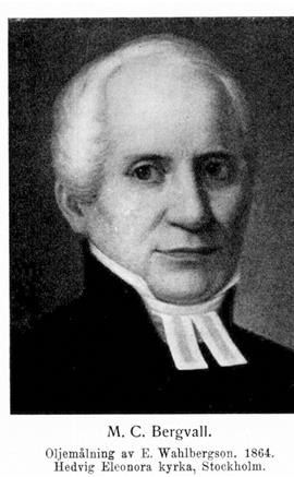 Bergvall, Mårten Christoffer, f. 30 mars 1782 i Värnamo, d 5 mars 1852 i Paris. Föräldrar: prosten och kyrkoherden i Åker, Växjö stift, Bengt Bergvall och Anna Kristina Rubin. Student i Lund 28 okt. 1802; disp. 22 juni 1803 (Privilegia capituli Lundensis, p. II; pres. V. Faxe); filol. kand. 13 juni 1804; fil. kand. 15 dec. s. å.; disp. 19 dec. s. å. (Grammäthicæ Gothico—Is-landicæ electa, p. I; pres. N. H. Sjöborg); fil. magister 23 juni 1805; prästvigd i Växjö 19 apr. 1807. Pastorsadjunkt i Stockholm 1807; v. apologist i Stockholms katedralskola 1809; e. o. skvadronspredikant 6 aug. 1810, skvadronspredikant 17 juni 1811 och regementspastor 24 mars 1812, allt vid livgardet till häst; avlade pastoralexamen i Växjö 5 juni 1811; kyrkoherde i Ladugårdslands församling 23 jan. 1822; fullmäktig i riksbanken från 1823; bevistade såsom ombud i prästeståndet riksdagarna 1834—35, 1840—41, 1844—45 och 1847—48; ledamot av den i enlighet med K. brevet 30 okt. 1845 utsedda kommittén angående sockenstämmoförordning för Stockholms stad, men deltog på grund av avresa från staden i dess sammanträden endast t. o. m. 3 juli 1846. LNO 1836; medlem av Svenska bibelsällskapet, Samfundet pro fide et christianismo och flera andra sammanslutningar med liknande syften.