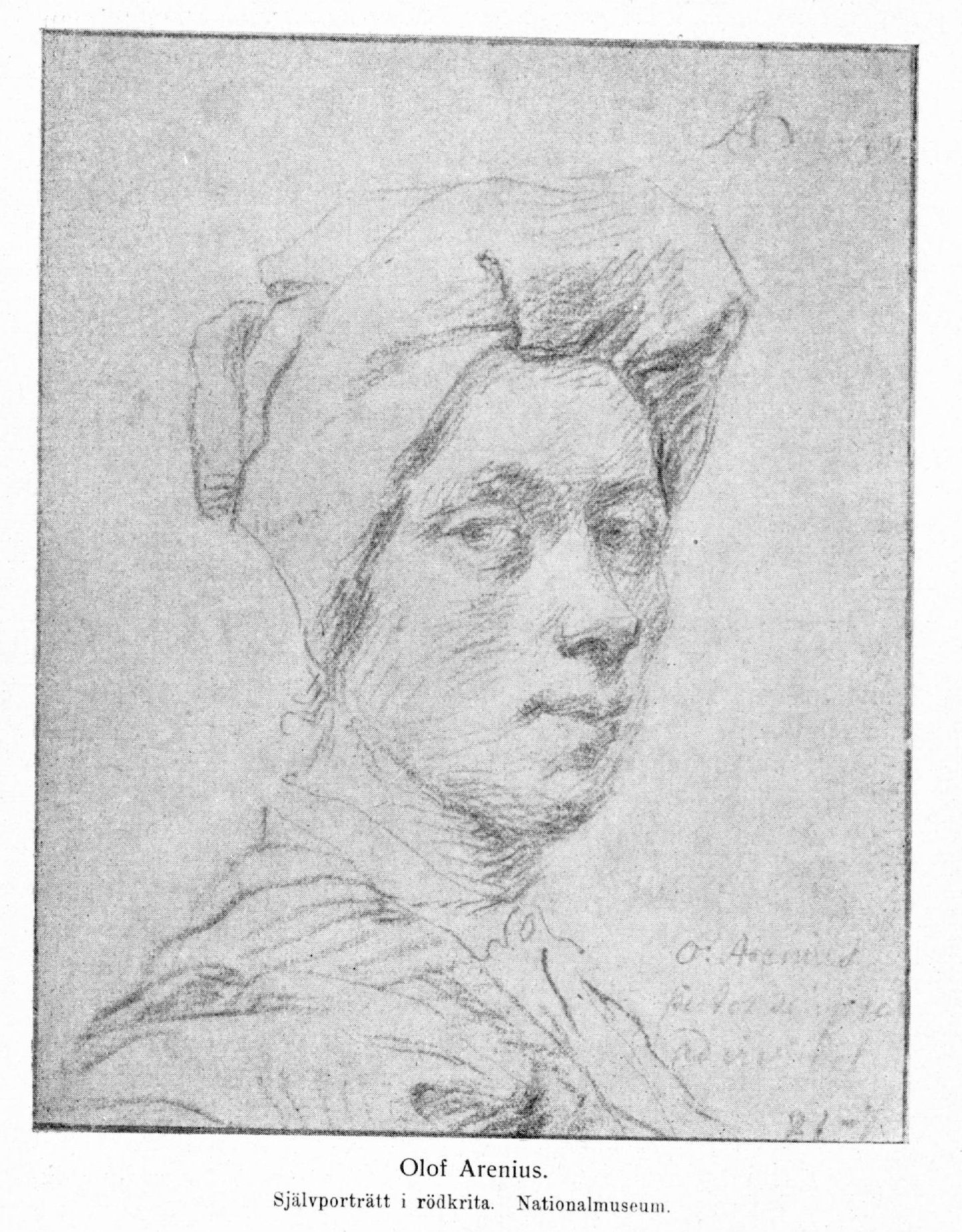 Arenius, Olof, f. 16 dec. 1700 I Bro församling i Uppland, d maj 1766 i Stockholm. Föräldrar: kyrkoherden i Bro och Lossa Erik Arenius och Anna Brodin. Student i Uppsala 28. febr. 1715; idkade där teologiska studier men lämnade snart universitetet; lärjunge av porträttmålaren David von Krafft i Stockholm. Utövade från mitten av 1720-talet självständig verksamhet som porträttör; reste för vidare utbildning omkr. 1730 till utlandet och vistades huvudsakligen i Holland; återkom till Stockholm 1736; var på 1740-talet lärare vid ritarakademin och verkade i övrigt som porträttmålare och tavelrestauratör i huvudstaden till sin död.