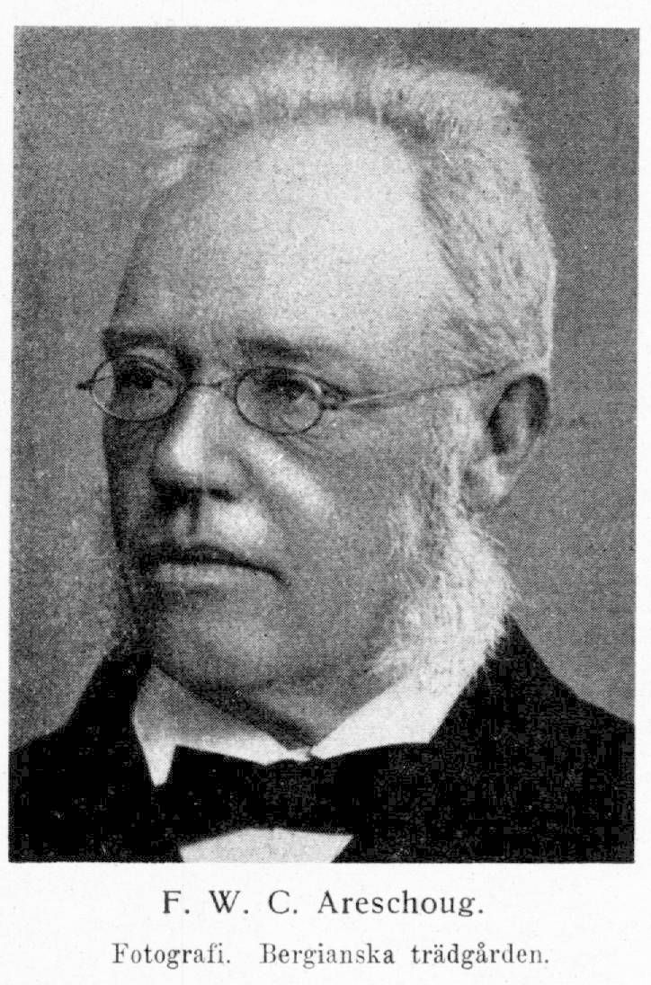 2. Fredrik Wilhelm Christian Areschoug, f. 9 okt. 1830, d 21 dec. 1908. Föräldrar: handlanden i Simrishamn, sedermera lantbrukaren Peter Julius Areschoug och Marie Louise Fallén. Åtnjöt privat undervisning; student i Lund 29 mars 1847; fil. kand, 3 apr. 1852; disp. 27 apr. 1853; fil., magister 23 juni s. å.; företog, utom mindre resor i Sverige, med offentligt understöd vetenskapliga resor till Istrien, Ulyrien, Kärnten och Steiermark 1855, till Berlin 1858, till Tyskland och Schweiz 1860–61, varunder han hos dåtidens främste växtanatom, Hugo von Mohl i Tübingen, erhöll den skolning på detta område, som alltid var hans stolthet, samt till Tyskland och Frankrike 1867, till Holland, Belgien, Frankrike och Tyskland 1869 och till England 1871, huvudsakligen för studier av släktet Rubus, och slutligen till Tyskland 1873 och 1875 för studier vid växtfysiologiska försöksarnstalter. Docent i botanik vid Lunds universitet 23 maj 1854; tillika lärare vid Lunds privata realskola 1856–72; adjunkt och botanices demonstrator 30 apr. 1858; upprepade gånger tf. professor i botanik mellan åren 1856–79; lärare vid Alnarps lantbruksinstitut 1867–79; handledde de mikroskopiska övningarna vid botaniska institutionen fr. o. m. ht. 1874; professor i botanik 11 juli 1879; erhöll avsked 15 juli 1898. LFS 1859; LVA 1876; LVS 1887; HedLFS 1907.