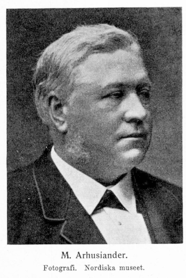 Magnus Arhusiander, f. 17 jan. 1829 i Säter, d 19 maj 1908 i Sundsvall. Föräldrar: kyrkoherden i Säter Karl Arhusiander och Andrietta Maria Schåltz. Åtnjöt undervisning i hemmet; genomgick tredje och fjärde klasserna i Falu skola. Bokhållare vid Forsse bruk 1845 samt vid Bollsta bruk s. å.; bokhållare 1851 och längre fram inspektor hos P.F. Heffner i Sundsvall; ledamot av Sundsvalls drätselkammare 1864–72 (slutligen ordförande); övertog 1868 tillsammans med v. konsul F. A. Åslund Heffners trävaruaffär under firmanamnet Heffner & c:ie (sedermera Heffners aktiebolag) och etablerade sig som grosshandlare och trävaruexportör i Sundsvall; stadsfullmäktig i Sundsvall 1869– 97 (v. ordförande; ordförande); ledamot av Medelpads lasarettsdirektion från 1873 (v. ordförande) och av styrelsen för Sundsvalls handelsbank från dess stiftande 1874, vari han deltog, (v. ordförande 1874–99) samt av Västernorrlands läns landsting från 1875–1904 (v. ordförande 1881–83; ordförande 1884–1900) och av Sundsvalls—Torpshammars järnvägsaktiebolags styrelse 1876–84; ledamot av riksdagens andra kammare 1883–92 lagt. och 1895–1901 samt av dess första kammare 1892 urt.–94 och var därunder bl. a. ledamot i särskilt utskott 1890 och 1895 och i bevillningsutskottet 1891–92 lagt. samt av talmanskonferensen 1899–1901; drog sig jämte Åslund tillbaka från affärsverksamheten 1894, varvid Heffners aktiebolags sågverks- och skogsegendomar såldes till Vivsta varvs aktiebolag; innehade olika smärre kommunala förtroendeuppdrag samt var ledamot av styrelserna i ett flertal flottningsföreningar och andra affärsföretag, däribland brand- och livförsäkringsaktiebolaget Norrland, bland vars stiftare han var. RVO 1876; RNO 1887; KVO2kl 1896; KVO1kl 1900.