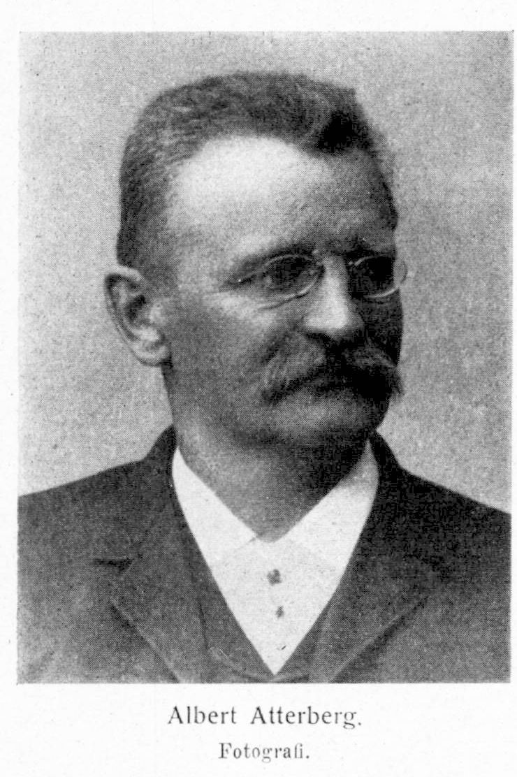 1. Albert Mauritz Atterberg, f. 19 mars 1846 i Härnösand, d 4 apr. 1916 i Kalmar. Föräldrar murmästaråldermännen Anders Magnus Atterberg och Kristina Johanna Ulinder. Genomgick Katarina läroverk och gymnasiet i Stockholm; avlade mogenhetsexamen därstädes 24 maj 1864; fil. kand. 13 sept. 1871; amanuens vid Uppsala universitets kemiska laboratorium; disp. 22 maj 1872; fil. doktor 31 maj s. å.; företog resor i Sverige och utlandet i vetenskapligt syfte och vistades särskilt vid A. W. Hofmanns laboratorium i Berlin 1875–76. Docent i analytisk kemi vid Uppsala universitet 30 maj 1874; vik. adjunkt därstädes 8 sept. s. å.; föreståndare för kemiska stationen i Kalmar från 1 juli 1877; ordförande i internationella kommissionen för mekanisk och fysikalisk jordundersökning 1910–15. RVO 1898; LLA 1900; RNO 1911; ledamot i in- och utländska sällskap; erhöll upprepade gånger statsunderstöd och vetenskapliga utmärkelser, däribland lantbruksakademins stora guldmedalj 1913.