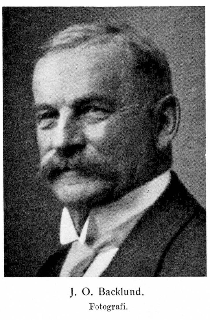 Backlund, Johan Oskar (Oskar Andreevitj), f. 28 apr. 1846 i Dannike[1] församling, d 29 ang. 1916 i Ryssland. Föräldrar: bonden och gårdfarihandlanden Anders Backlund och Sara Lisa Eliasdotter. Åtnjöt privat undervisning i Karlstad; intogs i Stockholms h. elementarläroverk 1864; student i Uppsala 17 sept. 1866; fil. kand. 29 maj 1872; disp. 5 dec. 1874; fil. doktor 31 maj 1875. Rektor vid realskolan i Mölndal 1873; docent i astronomi vid Uppsala universitet 25 jan. 1875; biträdande astronom vid vetenskapsakademins observatorium 10 febr. 1875–1876; observatör i Dorpat 1876–79; adjunktastronom vid kejserliga Nikolaiobservatoriet i Pulkova 1879–87; ledamot av ryska vetenskapsakademin 1883 och levde efter 1887 som (avlönad) sådan; direktör för observatoriet 15 mars 1895; verkligt statsråd; geheimeråd (med titel excellens); rysk adelsman. Utländsk LVS 1888; utländsk LVA 1897; utländsk LFS; 1905; var därjämte ledamot av ett stort antal lärda sällskap, innehade ett flertal hedersdoktorat och andra vetenskapliga utmärkelser samt deltog i ett mycket stort antal vetenskapliga kongresser.