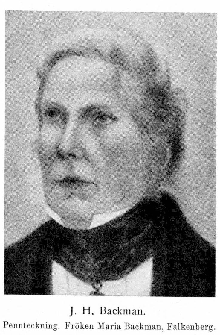 Tryckta arbeten: Ny lag-samling. H. 1—8 jämte suppl. Örebro 1831—-60. Fol. [H. 1—5 (jämte suppl.) anon., 6 o. följ.: utg. af J. H. Backman.] H. 1, innehållande de fyra första balkarne af 1734 års lag. 1831. S. 1—384. H. 2,... handels-balken.. . 1837. S. 385—650. H. 3,... missgiernings-bal-ken... 1839. S. 1—210. H. 4,... straff- och utsöknings-balkarne... 1847. S. 211—346. H. 5,... rättegångs-balken . . . 1847. S. 347—590. Supplement till Ny lag-samling [H. 1—3], upptagande ... de .. . t. o. m. början av 1846 ut-komne författningar... [Utg. af J. Falkman.] 1846. S. 1—256. H. 6, innehållande slut-supplement, upptagande ... de . . . intill slutet af år 1846 utkomne författningar; jemte fullständigt register... 1850. (2) s., s. 257—550. H. 7, upptagande... de författningar som utkommit... från 1847 års början till 1852 års slut, jemte register dertill. 1854. 284; 55, (1) s. [Registret har särsk. titel: Kronologiskt register till Ny lag-samling, l:a och 2: a delarne. (= H. 1—5) jemte supplement och 7: e häftet... utarb. af J. Falkman. 1854.] H. 8, upptagande... författningar... från 1853 års början till 1858 års slut jemte alfabet, och kronol. register. 1860. 305, (1) s. [Efter B:s död fullföljdes verket i: Fortsättning till Ny lag-samling, utg. af Carl E. Backman. H. 9—10. Sthm 1874—78. Fol. Ff. 9, upptagande... författningar ... från 1859 års början intill 1872 års slut. Afd. 1—2. 1874, 75. 649, (1) s. Ff. 10,... författningar ... från 1873 års början till 1877 års slut. 1878. 410, (2). — Ett särsk. register till de tidigare delarna av lagsamlingen utgjorde även: N. H. Quiding, Nytt slags register till Sweriges allmänna nu gällande lag med dit hörande författningar . .. Örebro 1839. Fol. (4), VI, 100 s.] — Sammanfattning af nu gällande allmänna stadgar angående skiftes-werket i riket, jemte samling af Kongl. Maj: ts utslag i åtskillige mål, till upplysning om skiftesförfattningarnes rätta förstånd och tillämpning. Sthm 1837. 4: o (8), 203, (1) s. (Tills, med A. FaxeJ — Register till den, år 1837, från trycket utgifne sammanfattning af gällande allmänna stadgar angående skiftes-werket i riket, jemte supplement. Örebro 1842. 4: o 59 s. (Tills, med dens.) — Handbok uti tviste-, utsöknings- och rättegångsmål. Efter förf:s död utg. Örebro 1863. XVI, 737 s. Omarb. uppl. under titel: Juridisk handbok omfattande tviste-, utsöknings- och rättegångsmål, utg. af C. E. Backman. Sthm 1883. XIV, 885 s.