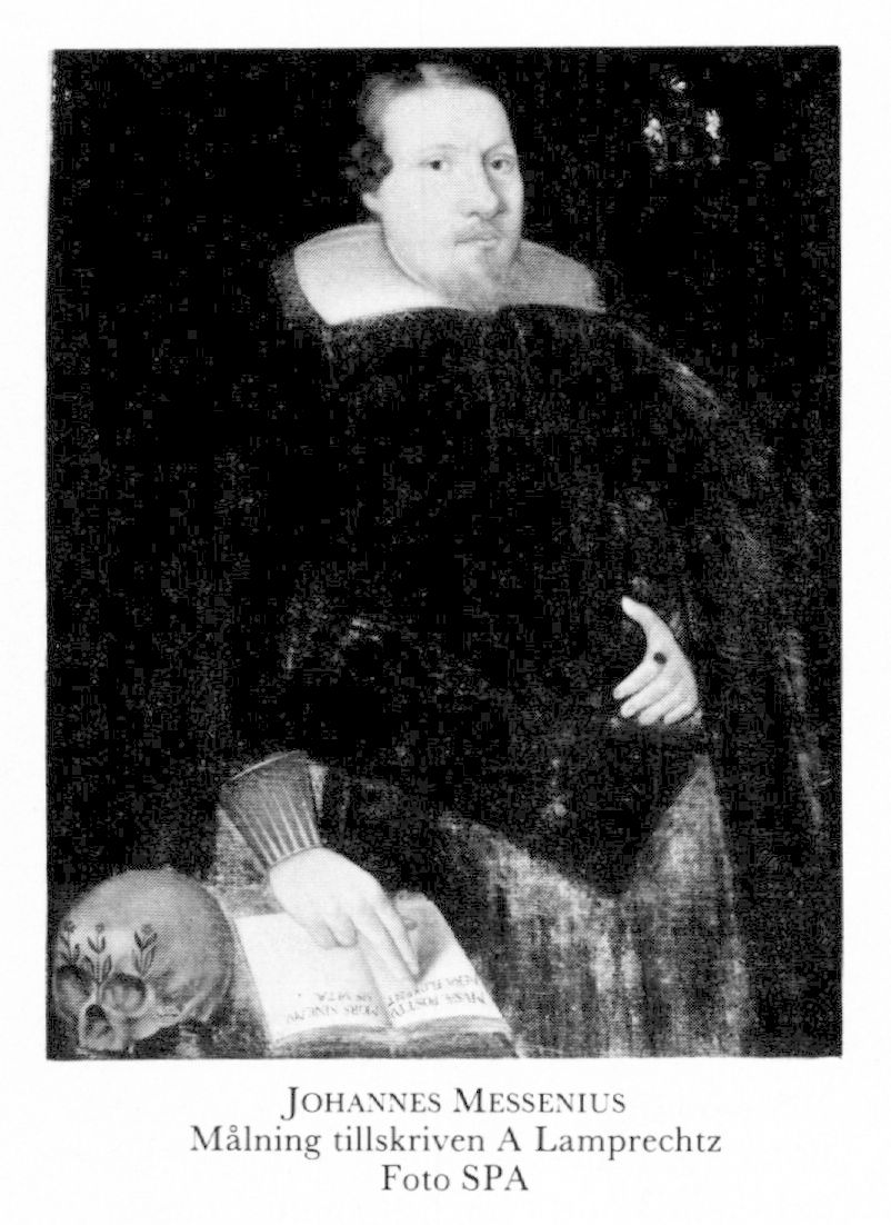1 Messenius, Johannes, f 1579 eller 1580 i Freberga, Kälvesten (nu V Stenby), Ög, d 8 nov 1636 i Uleåborg (Ahnlund). Föräldrar:, mjölnaren Jöns Thordsson o Birgitta Andersdtr. Studier vid Vadstena stadsskola, inskr vid jesuitseminariet i Braunsberg 10 nov 95, anställd hos biskopen Petrus Tylicki i Kraków 03, enl egna uppg:er prom dr vid univ i Ingolstadt 18 mars 05 o kreerad poeta laureatus i Prag 05, skolledare i Danzig 06, juris prof vid UU 09–13, anförtroddes vården av kronans äldre kansliakter 6 okt 13, assessor vid Svea hovrätt 16 febr 14, dömd till döden för landsförräderi o katolska sympatier 20 aug 16, benådad, dömd till livstids fängelse på Kajaneborg 26 sept 16, frigiven från fängelset 20 nov 35. Historiker.