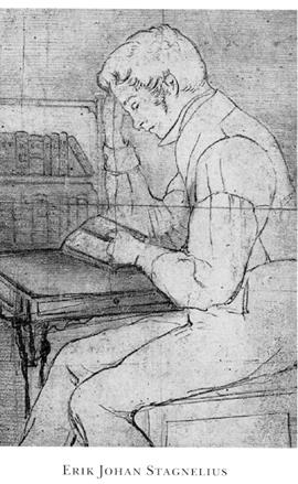 Källor o litt. D Andreae, EJ S (1955); PDA Atter-bom, Strödda bidr till sv vitterhetens häfder, 1, E J S (1848); S Bergsten, S:s Bacchanterna: studier i dramats uppbyggnad o symbolik (Sami 1960); dens, S o astrologin (Sami 1964); dens, En Stagneliusbibliogra-fi kritiskt sammanställd (1965); dens, Erotikern S (1966); P Brachin, Les influences francaises dans 1'oeuvre de EJ S (1952); L Burman, S:s geometriska sonetter (Festskr tillj Wrede, ed M Pettersson, 1995); C W Bottiger, Minne af E J S (SAH ifrån 1796, 47, 1872); F Böök, S o Chateaubriand (Sami 1909); dens, Studier i Stagnelii ungdomslyrik (1911); dens, Textkritiska problem hos S (Studier tillägn KWarburg ... , 1912); dens, EJ S (1919); dens, S: än en gång (1942); dens, S: liv o dikt (1954); dens, Kreaturens suckan o andra Stagneliusstudier (1957); S Cederblad, Lidner o S (Sami 1916); dens, Correggios San Sebastian o änglakören i Stagnelii drama Riddartornet (Sami 1920); dens, Studier i Stagnelii romantik (1923); dens, Romantikern S, 1-2 (Sami 1923 ol925); dens, E J S (1924); dens, Amanda i dikten o verkligheten (Sami 1925); dens, S o hans omgivn (1936); M Dietri-ch, Europäische Dramaturgie im 19. Jahrhundert (1961); R E Du Rietz, Kancellanserna i Liljor i Saron 1821 (Text (Uppsala) 1998, 5:2); C-G Ekerwald, S o Swedenborg (2001); H Engdahl, Den romantiska texten (1986); dens, Stagnelius Kärleken (1996); P Hallberg, Natursymboler i sv lyrik: från nyromantiken till Karlfeldt (1951); L Hammarsköld, EJ S: ett kors på hans graf (1823); P Henrikson, Kampen om littera-turhist: romantikerna som filologer (Text o tradition: om textedering o kanonbildn, ed L Burman o B Ståh-le Sjönell, 2002); dens, Kring tryckn av EJ S:s Martyrerna (NTBB 2002:1); dens, Ängelns ord: S o det kristna dramat (2003); dens, Dramatikern S (2004);J L V Himmelstrand, Några ord om Stagnelii lyrik, med särsk afseende på hans lärodikter (1862); O Holmberg, Stagneliusproblem (Sami 1933); dens, Stagneli-usnotiser (Sami 1936); dens, Stagneliuskronologi (Sami 1939);dens, Sex kapitel om S (1941); dens, An-teckmar om S (Sami 1966); Kris 23-24 (1982); U-B Lagerroth, Almqvist o scenkonsten (Perspektiv på Almqvist, 1973); R Lysell, EJ S: det absoluta begäret o själens hist (1993); dens, Det romantiske landskab: poedske strategier hos Wordsworth o S (Ny poetik 1994, nr 3); dens, Wladimir den store: en episk dikt (2002); S Malmström, Studier över stilen i S:s lyrik (1961); G H Mellin, E J S (Sv Pantheon, 13, 1833); A Nilsson, Sv romantik: den platonska strömningen (1916); dens, Kronologien i S:s diktn (1926); A Olsson, "Du i vars sken, i nattens dunkla timma": om ulltalet i S:s lyriska diktn (Att välja sin samtid, ed B Landgren, 1986); dens, Läsningar av intet (2000); Parnass 1993, nr 1; H Olsson, S o enslingskapet (Saml 1925); dens, Stagneliusbidrag (Saml 1933); B Risberg, Textkritiskt till S (Nysvenska studier 1921); dens, KringStagneliustexten (Nysvenskastudier 1923); M S Schwartz, Amanda: några strödda anteckn:ar ur Slag-nelii lif (Svea, 21, 1865); C Segerbank, Dödstanken i sv romantik: odödlighetstanke o uppståndelsetro hos tre sv diktare (1993);); J B Simonsson, EJ S: lif o dikt (1909); C Sjöholm, Föreställningar om det omedvetna: S, Ekelöf o Norén (1996); Slöja & spegel - romantikens former (Aiolos, nr 14-15, 2000);"— som solarna väckte till dans": en bok om EJ S 200 år (1993); Stagnelius-bladet 1998-2005; P Stein Larsen, Moder-nistiske outsidere: underbelyste hjorner af dansk lyriktradition fra 1800 til i dag (1998); dens, Sk0nhed og forrådnelse: S:s digtning mellem nordisk romantik og europaeisk modernisme (Kritik (Kobenhavn), 119, 1996); I Stenroth, Endymion - en sista gång?: två Stag-nelius-analyser (1977); I Thorén, Kompositionen i S:s Sigurd Ring (Saml 1927); J O Ullen, EJ S (2003); G Widengren, Gnostikern S (Saml 1944); J M Wim-merstedt, Biogr underrättelser om skalden EJ S (NT 1894); L Vinge, Karleken, Suckarnas Mystér andra lärodikter (Diktaren o hans formvärld: Lundastudier i litt:vetensk tillägn S Björck o C Fehrman, 1975); dens, Skräck o fasa hos S ("Den kännande människan": Litf.vetensk instit:s bidr ull Humanistdagarna i Lund 11-12 april 1986, 1986); dens, Om S:s sonett Tystnaden (Tystnader, ed H Andersson o E Österberg, 1997); dens, Med dolken i hand: kvinnoroller i S:s dramatiska författarskap (1998); dens, Thorsten fiskare - ett Adams barn från Öland (S:s Thorsten Fiskare, 2000); dens, Länge nog . . . Om slutpassagen i prospektet till Liljor i Saron (Saml 2005). - Johan Stagnell: J Charlesen, Strickerska bröllopsverserna: slagträ mellan hattar och mössor: något om frihetstidens politiska stridigheter (1994); B Hallvik, J S o hans kalmarmiljö (Sancte Christophers gilles chroe-nica, 23, 1951); dens, Gustav III:s revolution ur småländsk kråkvinkel (SvD 31 aug 1952); Kalmar hm, 1 (1951), o där anf litt; SMoK