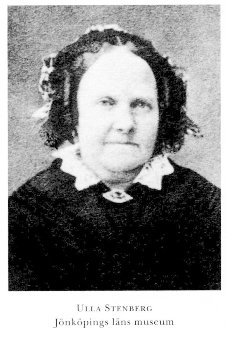 Stenberg, Johanna Ulrika (Ulla), f 16 april 1792 i Jönköping, Slottsförs (fdb saknas), d 16 april 1858 där, Kristina. Föräldrar: prosten Nils Johan Colliander o Anna Christina Ribbing. Väveriidkerska o innehavare av Stenbergska damastväveriet i Jönköping från 29, led av dir för Flickskolan där 35.