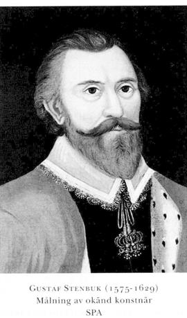 Gustaf Stenbu[c]k: RR 1603, f 59 v, o 1617, p 370 o 927, Skriva- till Konungen: Gustaf II Adolfs tid, vol 32, Anglica, vol 531, Hollandica, vol 1, Muscovitica, vol 26-27, Biographica, vol C:l, Västergötlands handhar 1609: 4 B, f 115, Red:koll:s arkiv F I: 327, f 32, E 734 (skriv:r UU Axel Oxenstierna), 1073 (d:o till Gabriel Gustafsson Oxenstierna), 3221 (skriv:r till Hans Clas-son [Bielkenstierna]) 26 okt 1603, 3610 (skriv:r till D v Falkenberg), 3658 (S:ska familjepapper), 8131 (skriv:r ull Magnus Brahe), 8133 (d:o till Abraham Brahe), 8148 (d:o till Per Brahe dy) o 8853 (orig:brev från märkvärdiga personer) samt Ericsbergsarkivets autografsaml, RA; X 240: 12 okt 1603 o 8 juni 1613, UUB; N Ahnlund, Peder Galts depescher 1622-24 (HH 26:1, 1920); dens, Axel Oxenstierna intill Gustav Adolfs död (1940); H Almquist, Gbgs hist, 1-2 (1929-35); J E Almquist, a a:n 1955, 1960 o 1961; dens, Dalslands säterier år 1622 jämte deras innehavare (SoH 1961); Anjou; AOSB 1:1-2, 2:1, 2:3 o 2:5 (1888-96); Bensow, a a; T Berg, a a 1927; densjohan Skytte (1920); W Berg, Samkar till Gbgs hist (1882); dens, a a 1904, s 234 o 254; R Björkman, Det nya Jönköping (Jönköpings hist, 2, 1918), s 12 o 24; Brahe, a a; Broomé; Broomé, a a:n; dens, Olof Stråle o Älvsborgs kapitulation (Hist studier tillägn Nils Ahnlund, 1949), s 121; E Brännman, Frälseköpen under Gustaf II Adolfs regering (1950); A Cronholm, Sveriges hist under Gustaf II Adolfs regering, 5:1 (1871), s 187-195; Danmark-Norges traktater, 3 (1916); Fors-grén, a a, s 107, 143, XXXVI o XXXVIII; Fortifik, 1; Frälseg, 1:2, 3:1-2 o 4:2-3 (1931-76); H Fröding, Berättelser ur Gbgs äldsta hist (1908), s 3; Gbgs eskader o örlogsstation 1523-1870 (1949); G Gezelii biographiska lexicon, 3 (1780); E Hildebrand, Rid-darholmen (Utredn:ar rör statens mark o tomter i Sthlm, 1, 1910), s 3 o 49; O Jägerskiöld, Torsjöarkivet (Donum Boéthianum 1950), s 159 ff; Kammarkolks prot, 1 (1934); C A Klingspor, Sveriges adel under 1600-1700-talen, 2 (1877); Lags o doms; Leijonhuf-vud, a a; Lokalf; Lossius, a a; Luthander, a a, s 82 f, 85 f o 96; Mannerfelt, a a; A Norberg, Polen i sv politik 1617-26 (1974); Nya Lödöse tänkeböcker; Palme, a a 1942; Petersson, a a; F Rudelius, Kalmar reg:s chefer 1623-1907 (1908), s 150; Samuelson, a a, s 293; O Siren, Gamla sthlmshus, 1 (1912); SMoK; SPA; Sprinchorn, a a, s 150 f o 153; SRP 1-2 (1878-80); ST 5:1 (1903), s 213, 219 o 223; STb från år 1592, 5, 6, 8-11, 13 o 16 (1959-94); C M S[tenbock], Schering Rosenhanes "Hortus Regius" (PHT 1909); R Stenbock, Torpa (1925), s 28-31; Stiernman, a a; Swed-lund, a a, s 36; Tegnér, a a; Tham, a a; B Thyresson, Sverige o det protestantiska Europa från Knäredfre-den till Rigas erövring (1928), s 29; S Tommos, The Diplomatica collection in the Swedish National Archives (1980); Ur Abraham Brahes Tidebok (Fören Gamla Halmstads årsb 1935), s 237; Ur o om S:ska ar-chivet på Thorsjö, (Läsn för bildn o nöje, 2, 1848); s 191; J Wangö, Knäred i gången tid (1974), s 41; S Welin, Öresten (VFT 2:2-3,1903), s 14; Werwing, a a, 2; A Westman, Besök af k personer o högtidligheter med anledn af vissa bemärkelsedagar (Fören Gamla Halmstads årsb 1928), s 24; Westlund, a a 1942, s 14 ff, 24 f o 31; G Wetterberg, Kanslern Axel Oxenstierna i sin tid (2002); H Wideen, Kungshuset (Skara, 1, 1986) ;J Widekindi, Thet sw i Ryssland tijo åhrs krijgz- historie (1671), s 911 o 913; dens, Then fordom stor-mächtigste... Gustaff Adolphs... hist (1691); G Witt-rock, Gustav II Adolf (Sveriges hist till våra dagar, 6, 1927), s 34; F U Wrangel, Sthlmiana, 1-4 (1912); Äldre handkar ang Vestergötland, (VFT 2: 2-3, 1903) s 116 f; F Ödberg, Om vestgöta-adelsmannen Tord Bonde (d:o),s32.