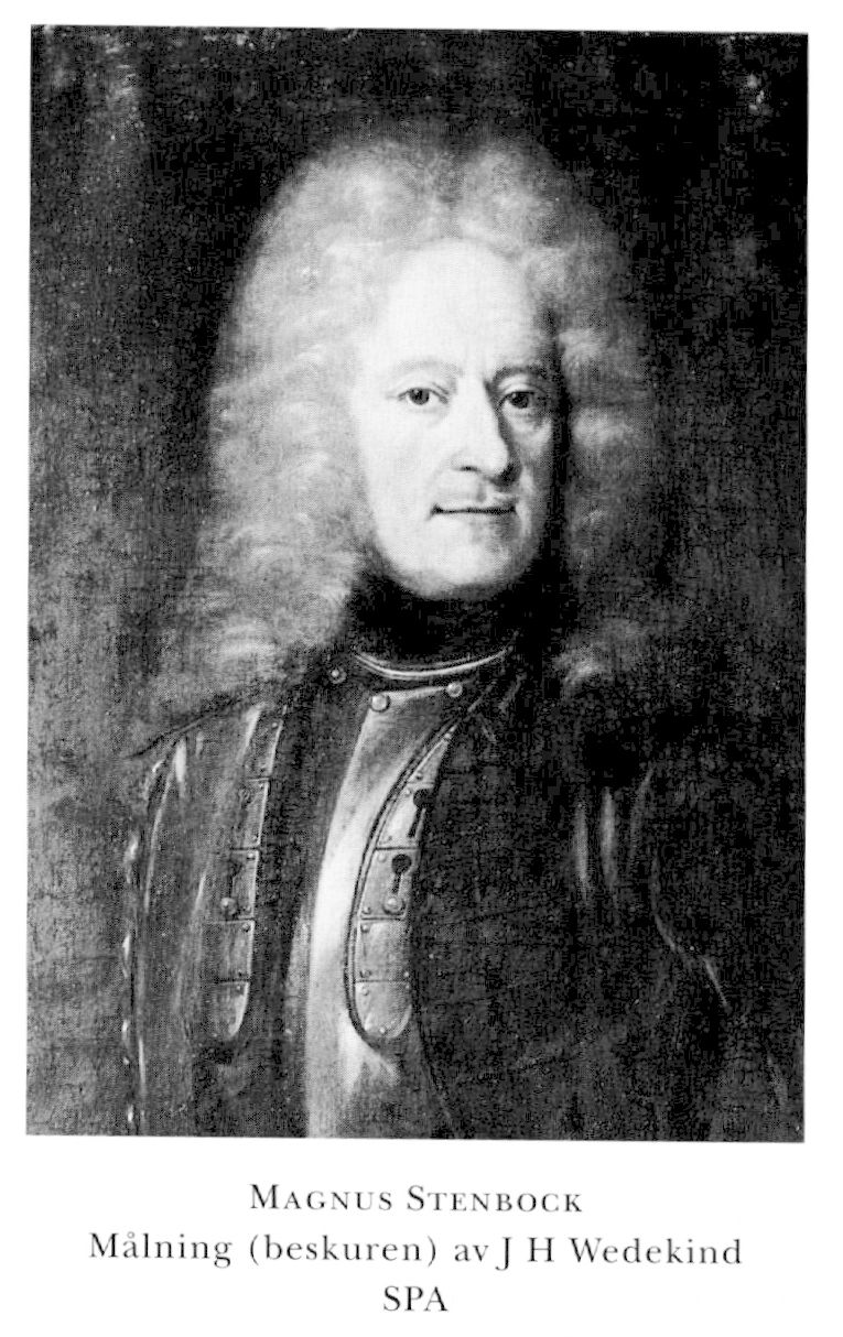 6 Stenbock, Magnus, son till S 4 i hans 1:a gifte, f trol 12 maj 1665 i Sthlm (jfr Eriksson, s 7f), d 23 febr 1717 på Frederikshav-ns kastell, Khvn. Inskr vid UU 7 aug 78, fänrik reformé vid Gustaf Carlssons infan-terireg i holländsk tjänst sept 83, fänrik där 10 dec 84, vid prinsen-ståthållarens livgarde till fot 26 mars-1 sept 87, kapten vid garnisonsreg i Stade 27 maj 87, major vid Nils Bielkes infanterireg 16 sept 88, brigadmajor 5 april 90, överstelöjtn vid garnisonsreg i Stade 19 juni 90-97, generaladjutant i kejserlig tjänst hos markgreve Ludvig Vilhelm av Baden 23 sept 93, överste i kejserlig tjänst 17 okt 93, överste för garnisonsreg i Wismar 31 maj 97, kommendant där 3 juni 97, överste för Kalmar reg 2 jan 99, för Dalreg 16 febr 00-06, generalmajor av infanteriet 25 nov 00, generalinspektör över exercisen vid infanteriet 11 mars 01, kommendant i Krakow 1 aug-okt 02, dir för generalkrigskommissariatet 18 aug 02-06, chef för värvat dragonreg 20 nov 03-06, generallöjtn av infanteriet 4 nov 04, general av infanteriet juni 06 (fullm antedaterad 27 dec 05), guvernör i Skåne 27 dec 05 (tilltr juni 07)-mars 11, ordf i skånska kommissionen febr 08-09, deltog i utsk:mötet 10, konstit fältmarskalk 21 maj 10 (k fullm 28 jan 13), k råd från 30 aug 10.