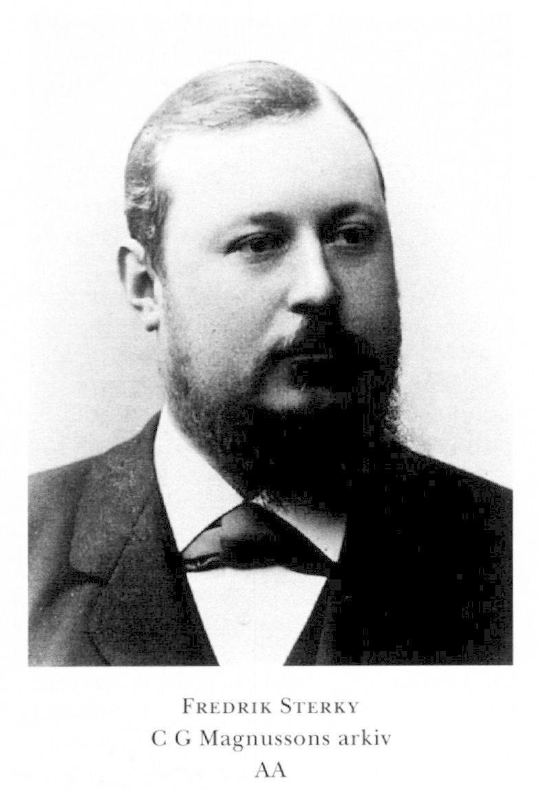 2 Sterky, Fredrik, f 11 jan 1860 i Sthlm, Jak o Joh, d 11 jan 1900 där, Ad Fredr. Föräldrar: kaptenen o godsägaren Fredrik August S o Eleonora Dorothea Sundqvist. Mogenhetsex vid Sthlms Ateneum 2 juni 77, e o kanslist vid Generalpoststyr 21 april 79, extra biträde 21 jan 81, tf kammarskrivare o tf bokhållare periodvis 81-83, allt vid Generalpoststyr, kontorschef vid firma C W & A Brinck (porterhandel) 83-86, medarb o kassör i Social-Demokraten, Sthlm, 85-86 o 86-89, redaktionssekr där 91, grundare av o kassör i Nya Samhället, Sthlm, juni-sept 86, ordf vid Sveriges soc:dem arbetarepartis (SAP) konstituerande kongress i Sthlm april 89, vistades i Khvn dec 89-febr 91, red o utg av Ny Tid, Gbg, mars 92-mars 98, deltog i folkriksdagen 93, expeditör i Arbetet, Malmö, febr-okt 98, ordf i Landsorganisationen (LO) från aug 98.