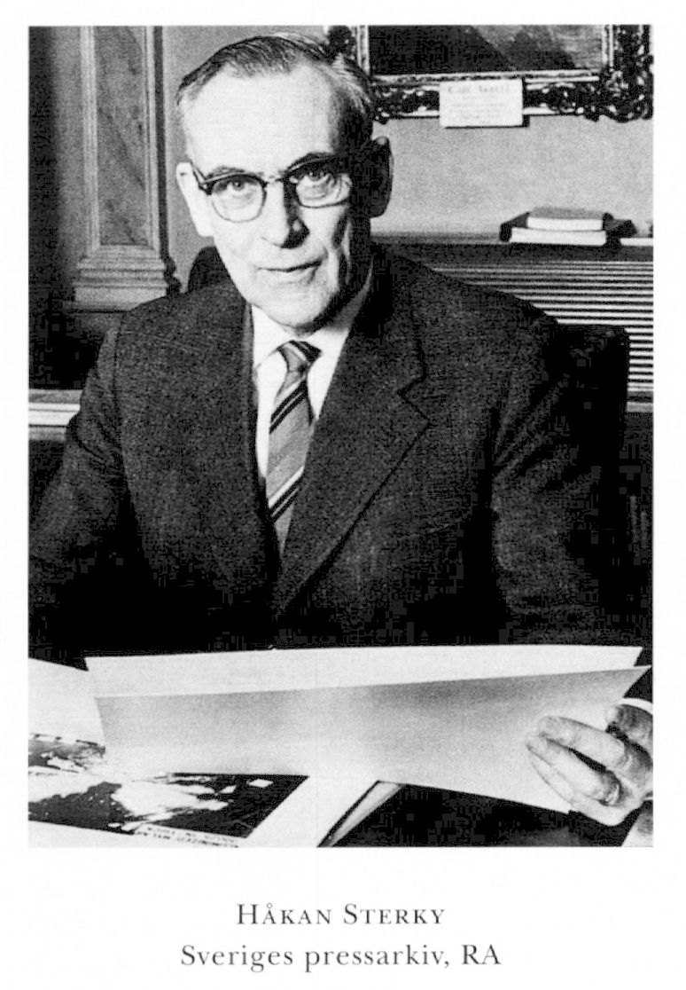 3 Sterky, Håkan Karl August, kusins sonson till S 2, f 7 april 1900 i Sthlm, Hedv El, d 21 nov 1992 i Lidingö. Föräldrar: krigsrådet Carl Edvard Theodor S o Hilma Elisabet Almén. Studentex vid H reallärov å Östermalm, Sthlm, 18 maj 18, värnplikts- o officersaspirantutbildn vid Fälttelegrafkåren 15 juni 18–2 sept 19, elev vid KTH 18, avgångsex från fackavd för elektroteknik[1] där 31 maj 23, fänrik i Fortifikationens reserv 31 dec 20, underlöjtn 13 jan 23, löjtn där 4 juli 26, förest för ASEA:s rundradioavd, Sthlm, 12 okt 23-31 dec 24, studerade i USA 7 jan 25–3 mars 26, ex vid Harvard university, Cambridge, Mass, USA, 24 aug 25, biträdande ingenjör vid Vattenfallsstyns laboratorium, Älvkarleby, Upps, 15 maj 26-9 juni 27, ingenjör vid Sv radio ab:s transmissionstekn avd 1 aug 27–30 april 31, chefsassistent vid Telefon ab LM Ericssons forskn- o utveckl:avd för transmissionsteknik 1 maj 31–30 nov 33, tekn dr vid KTH 31 maj 33, doc i telegrafi, telefoni o radio där 16 nov 34, chef för Telefon ab LM Ericssons konstruktionsavd 1 dec 33–30 juni 37, tf prof i telegrafi o telefoni vid KTH 1 juli 37, ord 17 nov (tilltr 1 dec) 39, prorektor o tf rektor 42, allt vid KTH, andre v ordf i Sv teknologfören 39-41, ordf där 49–51, led av försvarsväsendets ingenjörutredn juni 42–dec 44, generaldir o chef för Telegrafverket (från 53 Televerket) 25 sept (tilltr 1 okt) 42-65, led av styr för Stiftelsen Tekn museet 42–76, av 1943 års rundradioutredn juni 43–jan 46, ordf i Scoutfrämjandet 44, i styr för Försvarets forskn:anstalt 45–54, led av atomkomm (från 59 Statens råd för atomforskn) nov 45–65, av styr för ab Atomenergi 47–68, ordf i SOS-utredn maj 49–april 51, led av styr för ab Sthlms bryggerier 50-63, av rymdkomm maj 62–juni 64, av styr för Pripp-Bryggerierna ab 64–69, av styr för IBM sv ab 66–71, av styr för Scania-Vabis ab (från 69 Saab-Scania ab) 66-72. - LIVA 41 (preses 63–65), LKrVA 44, LVA 45, LVS 51. – Iqml 65.