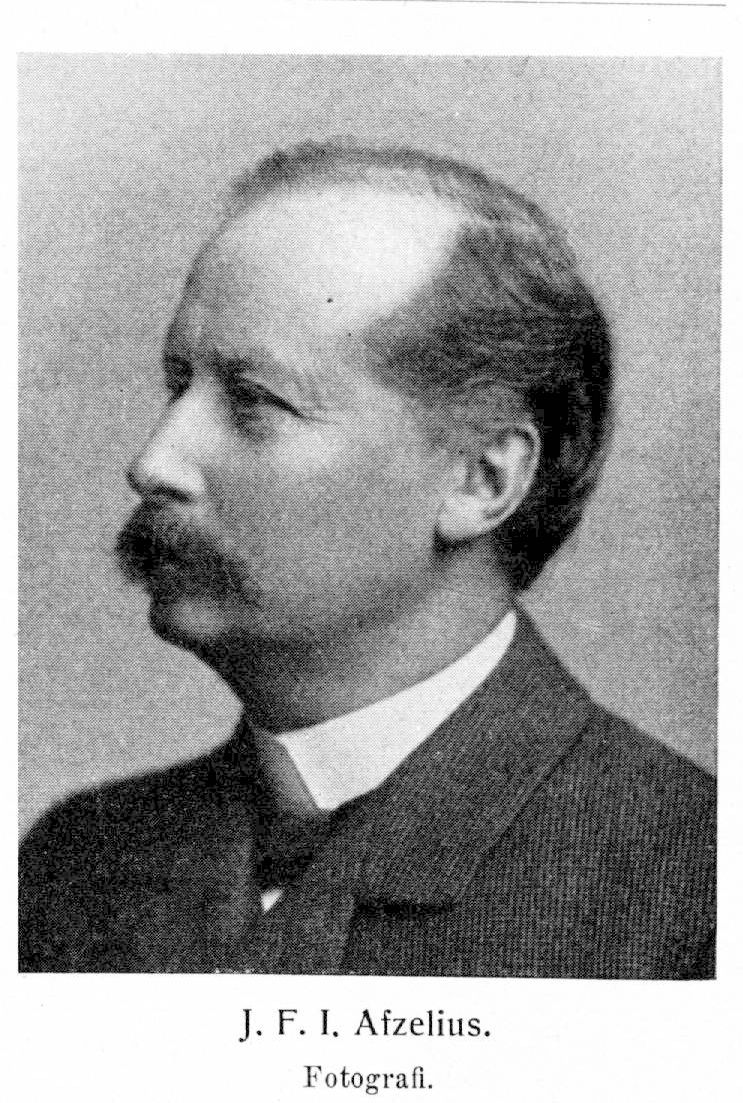 8. Johan Fredrik Ivar Afzelius, son till A. 6, f. 15 okt. 1848 i Uppsala. Avlade mogenhetsexamen vid Uppsala h. elementarläroverk 22 maj 1867; student vid Uppsala universitet ht. s. å.; jur. fil. kand. 14 sept. 1868; jur. utr. kand. 24 sept, 1873; studerade vid universiteten i Leipzig och Göttingen okt. 1874–aug. 1875; jur. utr. lic. 1 sept. 1877; disp. 23 jan. 1877; jur. utr. doktor 6 sept. s. å.; har på offentligt uppdrag företagit resor till Tyskland och Frankrike 1880 för att inhämta praktisk kännedom om dessa länders rättegångsväsen samt till Tysklands sjöstäder 1885 för att taga kännedom om de olika systemen för fartygsregistrering och fartygshypotek. E. o. notarie i Svea hovrätt 15 okt. 1873; tjänstgjorde därefter som biträde hos domhavanden i Luggude härad till sept. 1874; docent i svensk allmän lagfarenhet och romersk rätt vid Uppsala universitet 7 febr. 1877; tf. professor i nationalekonomi 5 mars–maj s. å.; tf. domhavande i Luggude härad 19 maj–14 juli 1877, 6 maj–2 juni 1878; tf. professor i processrätt 11 sept. s. å.–24 okt. 1879; v. häradshövding 26 juni 1878; e. o. professor i processrätt 24 okt. 1879; förordnad att biträda nya lagberedningen vid arbetet på nya rättegångsordningen 30 apr. 1880; adjungerad ledamot i Svea hovrätt under en del av 1882; ledamot av sjölagskommittén 24 nov. 1882–1887; revisionssekreterare 24 sept. 1886; ledamot av nya lagberedningen och av; förstärkta lagberedningen 17 dec. 1886; tf. byråchef för lagärenden 5 sept. 1889; förste suppleant för fullmäktige i riksgäldskontoret 1890 och 1891; justitieråd 29 maj 1891–5 dec. 1902; stadsfullmäktig i Stockholm 1893–99; ledamot av riksdagens första kammare 1898–1903 och 1905–15 och har därunder varit ledamot av talmanskonferensen 1903 och 1907–11, ledamot av hemliga utskottet vid lagtima riksdagen 1905 och av särskilda utskottet vid urtima riksdagarna s. å., kammarens talman 1912–15 samt kommitterad för tryckfrihetens vård 1906–12; ordförande i lagberedningen 5 dec. 1902–30 okt. 1909; ledamot av permanenta skiljedomstolen i Haag 18 febr. 1905; av K. M:t förordnad ledamot i styrelsen för trafikaktiebolaget Grängesberg-Oxelösund 1907; svensk ledamot av skiljedomstolen i renbetesfrågan 11 febr. 1909; president i Svea hovrätt 18 febr. 1910; ledamot i kommittén angående[1] ifrågasatt ändrad ämnesfördelning mellan vissa professurer inom juridiska fakulteten vid Uppsala universitet 21 okt. 1910–dec. s. å. samt angående samarbete mellan universitetets i Lund historiska museum och kulturhistoriska museet därstädes 8 juli 1912–20 nov. s. å.; ordförande i tonnageavgiftsnämnden 28 aug. 1917. RNO 1887; KNO1kl 1892; KmstkNO 1900; HedLHA 1903 (preses fr. o. m. 1905); LVA 1905; en av de 18 i sv. akad. 1907; RoKavKMO 1910; juris hedersdoktor vid Kristiania universitets jubelfest 6 sept. 1911; hedersledamot av juridiska föreningen i Finland vid dess 50-årsfest 5 okt. 1912.
