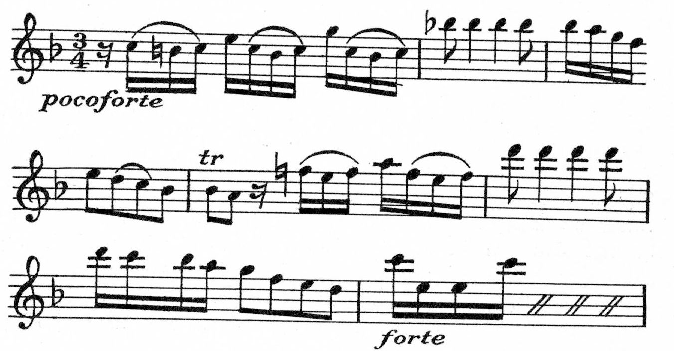 Om A:s ställning som föregångsman vittna ytterligare även andra nyheter. Så t. ex. i fråga om instrumentation. Riemann framhåller (Handb. d. musikgeschichte s. 175) att »redan hos Mannheimerskolan åtfölja blåsinstrumenten ibland icke stråkinstrumenten utan hava långtuthållna toner och till och med för dem särskilt lämpade tematiska gestaltningar». Emellertid före- kommer dylikt redan hos A., vilken i tredje symfonins (i op 1.) tredje sats behandlat valthornet såsom t. o. m. obligat parti. [notparti, se ovan] Även violastämman företer på sina ställen en självständig behandling (såsom i sistnämnda symfonis tredje sats) samt är för övrigt skild från basstämman, vilket framsteg i behandlingssättet Pohl (Haydn s. 276) angiver såsom förekommande först hos Sammartini. Huruvida A. kan tillerkännas någon prioritet även i fråga om crescendobeteckning är svårt att avgöra. I hans första opus förekomma av föredragsbeteckningar: piano, p.piano, pianissimo, poco forte, forte och fortissimo. Visserligen tyckas tecknen i allmänhet angiva endast växling i styrkegraden men icke stegring från piano till forte, och ordet »crescendo» förekommer ingenstädes i symfonierna. Men väl skulle man däremot kunna antaga, att ett ställe sådant som de sju nedanstående takterna från poco forte till forte (i sjätte symfonins första sats) innebure ett underförstått crescendo. [notparti, se ovan] I sitt hemland var A. ej alltför mycket känd eller erkänd. Visserligen nämner Hülphers år 1773, att han var »erkänd för en av de större komponister i Tyskland, varom flere dess tryckta arbeten intyga, våre landsmän till fägnad», och visserligen förekomma smärre stycken av A. i den tidens svenska handskrivna musikalbum, vilket torde bevisa, att dessa småstycken voro allmännare kända och omtyckta, men något större intresse för tonsättaren torde icke hava förefunnits, och ej ens hans tryckta arbeten anskaffades fullständigt till svenska bibliotek. A. hade dock i sanning förtjänat att mera uppmärksammas i sitt fädernesland, ty han intager en ansedd plats i den allmänna musikhistorien, och bland svenska tonsättare från äldre tid är han en av de förnämsta.