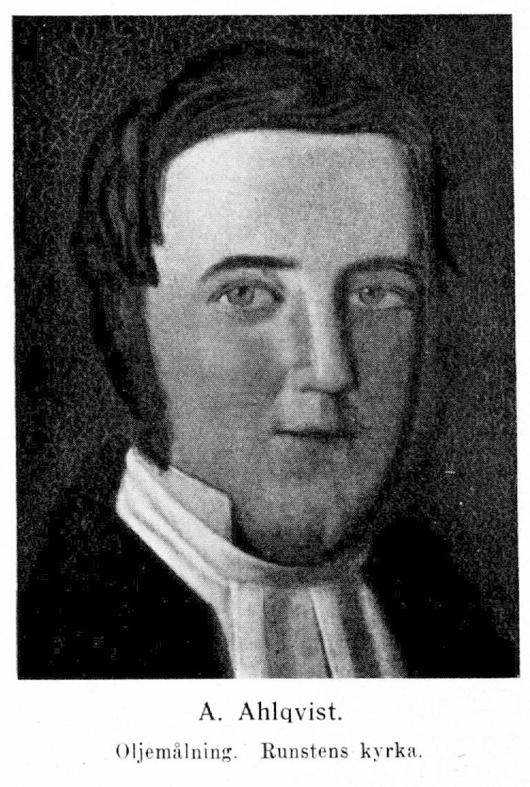 1. Abraham Ahlqvist, f. 5 juli 1794 i Mörbylånga församling, d 9 juli 1844 i Runsten. Föräldrar: komministern Per Ahlqvist och Maria Juliana Fornander. Student i Uppsala 11 okt. 1813; disp. 7 juni 1815 (Flora Runsteniensis, p. I, pres. K. P. Thunberg); fil. kand. 3 dec. 1817; disp. 13 dec. s. å. (Quinta Iliadis Homericge rhapsodia Græce et Svethice, p. V, pres. J. Tranér); fil. magister 16 juni 1818; prästvigd 20 dec. s. å.; avlade pastoralexamen 30 apr. 1825. Pastorsadjunkt i Kalmar stift 1818–20, i Högsrums, Vickleby och Ljungby församlingar; kollega vid Kalmar trivialskola 15 sept. 1820; tillika lärare i naturalhistoria vid gymnasiet 15 aug. 1821–1 maj 1826; konrektor vid skolan 28 mars 1825; kyrkoherde i Runstens församling 22 sept. 1825 (tillträdde maj 1827); riksdagsman 1828–30, 1834–35; förordnad att som riksantikvariens ombud ha uppsikt över forntida minnesmärken på Öland 1 dec. 1829; honorarie prost 18 sept. 1831; kontraktsprost i Ölands medelkontrakt 14 dec. s. å. KorrespHA 1829; LLA 1831; KorrespSkS 1833; var dessutom medlem av åtskilliga sällskap och lärda samfund, varibland svenska patriotiska sällskapet (1822), götiska förbundet (1825), samfundet pro fide et christianismo (1830).