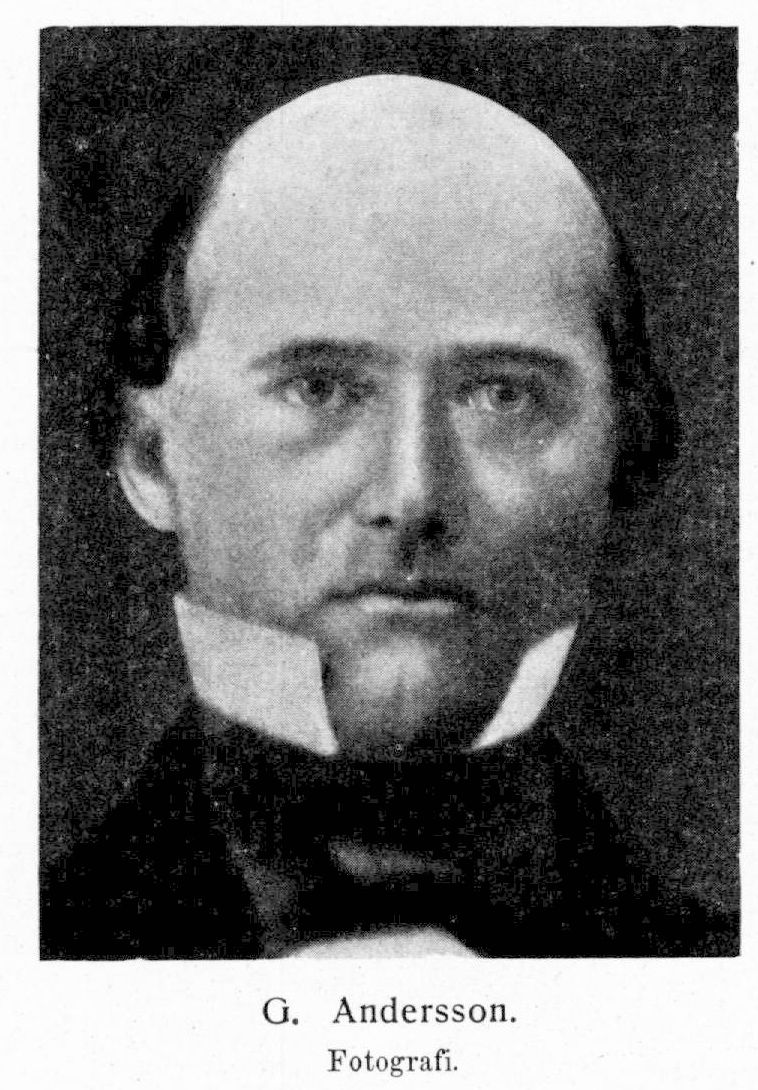 Andersson, Gustaf, f. 29 mars 1812, d. 18 apr.1864. Föräldrar: stadsvaktkarlen Anders Gustafsson[1] och Ingrid Tofvesdotter. Student i Lund 21 juni 1828; disp. 17 dec. s. å. (Lusiones prosodicse, p. I, pres. P. Wieselgren) samt 20 juni 1838; fil. magister 23 juni s. å.; företog utländska resor 1850–52 och 1856 samt en pedagogisk studieresa till Tyskland 1861, varöver han utgivit en berättelse. Andre adjunkt 16 juni 1841, lektor i latin 8 nov. 1848 samt tf. rektor 1863, allt vid katedralskolan i Lund.