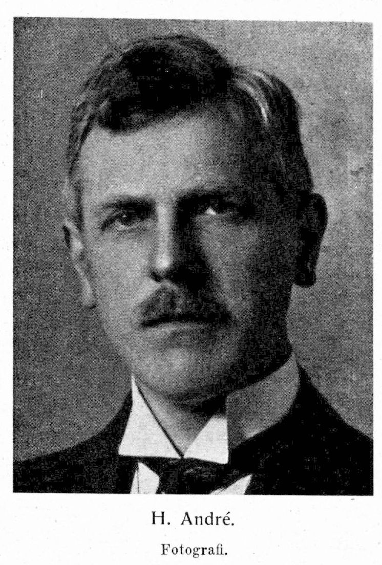 André, Harald, f. 14 juni 1879 i Motala. Föräldrar: grosshandlaren John Andersson och Maria Kristina Andersson. Genomgick Motala elementarläroverk och h. realläroverket i Stockholm; avlade mogenhetsexamen 17 maj 1897; studerade någon tid i Uppsala samt därefter vid universitetet och musikkonservatoriet i Leipzig ht. 1900–vt. 190.3 och vid Sternska konservatoriet i Berlin ht. 1904–vt. 1905; repetitör i Berlin 1905; återvände till Sverige 1907; förste regissör vid K. teatern i Stockholm spelåret 1907–08; musikkritiker i Svenska Dagbladet 1 jan.–31 maj 1907 och i Stockholms Dagblad 1908–10; ånyo regissör vid K. teatern 1 juli 1910. RVO 1917; NS:tOO 1918. Gift 17 maj 1908 med Gerda Malmqvist, f. 21 dotter till kronofogden Nils Malmqvist i Köpingebro.
