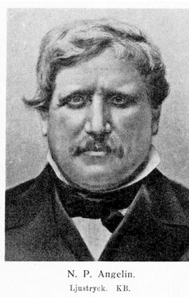 Angelin, Nils Peter, f. 23 juli 1805 i Lund, d 13 febr. 1876 i Stockholm. Föräldrar: smedsmästaren Tuve Angelin och Brita Kristina Risberg. Studerade vid Lunds katedralskola; student i Lund 17 dec. 1821; studerade vid olika tillfällen i Köpenhamn, Stockholm och Uppsala samt företog vetenskapliga resor till Gottland 1826, 1836–37, 1843 och 1854, till Östergötland och Västergötland 1838, 1840 och 1841, till Kalmar län och Öland 1839 och till Närke, Dalarna m. fl. orter 1848; gjorde jämväl upprepade studiefärder i Skåne, Halland och Blekinge; företog geologiska resor till Norge och Danmark samt tvenne dylika till Tyskland, alla med undantag av de två sistnämnda på egen bekostnad; hedersdoktor vid universitetet i Breslau 5 febr. 1857; erhöll ett anslag å 500 rdr rmt av Lunds universitets reservfond 6 apr. s. å.; docent i paleontologi vid Lunds universitet 22 maj s. å.; adjunkt i geologi och paleontologi därstädes 17 jan. 1860; intendent med professors titel vid riksmuseets avdelning för paleontologi 10 febr. 1864. LVA 1857; LFS 1861. — Ogift.