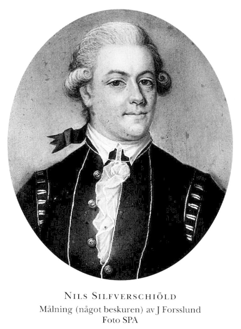 2 Silfverschiöld, Nils, sonsons son till S 1, f 23 juli 1753 i Jönköping, d 20 okt 1813 i Kumla. Föräldrar: hovrättspresidenten frih Arvid S o grev Ulrika Magdalena v Seth. Inskr vid LU 31 jan 66, volontär vid Västgöta kavallerireg 68, korpral 69, kvartermästare där 3 febr 69, fältväbel utan lön vid Bohusläns dragonreg 2 okt 70, kornett 5 juni 71, stabslöjtn 13 april 74, stabskapten m löjtn:s indeln 30 april 77, allt vid Bohusläns dragonreg, genom byte kapten o kompanichef vid Västgöta-Dals reg 10 febr 79, major där 25 sept 81–18 okt 84, deltog i riksdagarna 89 o 00–12 (led av hemliga utsk 89 o 12 urt, av statsutsk 09/10–12 urt, av första särsk utsk 10 urt, av tronföljarnämnden 10 urt, av bankoutsk 10 urt–12 urt), led av dir för Trollhätte kanal- o slussverks bolag 93–02, av Örebro läns hushålln:sällsk:s förvaltn:utsk 04–10 o från 12, ordf där 05–06. – LPS 97, LLA 12.