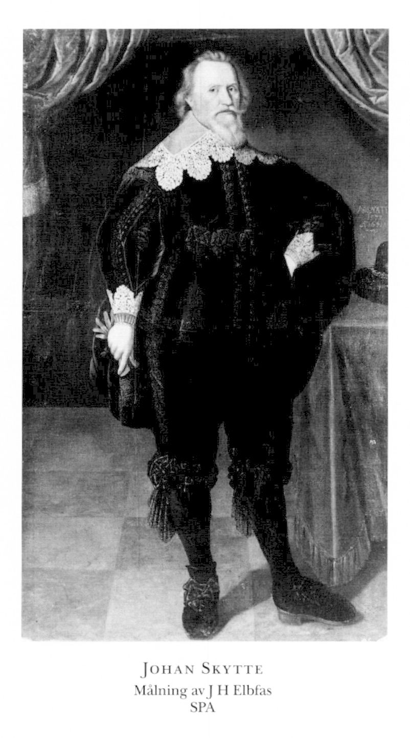 1 Skytte, Johan (före adl Schroderus), f i maj 1577 i Nyköping, d 15 mars 1645 i Söderåkra, Kalm. Föräldrar: borgmästaren Bengt Nilsson Skräddare o Anna Andersdtr. Elev vid Nyköpings latinskola o kollegium i Sthlm, studerade utomlands 92–01, inskr vid univ i Frankfurt an der Oder 92, vid univ i Wittenberg 19 okt 93, vid univ i Marburg 24 sept 94, prom mag där 11 aug 98, verksam i K kansliet en period 99, kallad till K kansliet dec 01, lär för hertig Gustav Adolf 1 maj 02, hovråd 03, adl 14 aug 04, lär för hertig Johan (bd 20) o prinsessan Maria Elisabet (bd 25) 04, häradsh i Tjusts o Tunaläns domsaga, Kalm, från 04, lär för hertig Karl Filip (bd 20) 08, deltog i beskickn till Nederländerna o England 19 mars 10, riddare där 10, ståth i Västmanland 11, kammarråd senast 20 juni 12-29, sändebud till Danmark 23 febr 15, assessor i Svea hovrätt 15-29, deltog i beskickn till Danmark, Tyskland, Nederländerna o England 30 aug 17, riksråd från 27 jan 17, UU:s kansler från 22 (utn trol före 14 sept), tjänsteförrättande riksskattmästare senast 23-29, frih 16 juni 24 (introd 25), lagman i Norrfinne lagsaga med Åland o Österbotten från 21 april 27, generalguvernör över Livland, Ingermanland o Karelen 29–34, Dorpats univ:s kansler 32–34, president i Göta hovrätt från 5 okt 34.