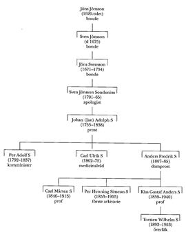 S:s son Torsten Wilhelm S (1893–1953) avlade studentexamen vid Nya elementarskolan i Sthlm 1912 och inskrevs s å vid UU där han blev med kand 1916, med lic 1922 och med dr 1927. Han valde psykiatri som specialområde och blev vid LU docent i detta ämne 1931 och i rättspsykiatri 1945. Torsten S var 1922–30 läkare vid Uppsala hospital och 1931–45 överläkare vid S:t Lars sjukhus i Lund. Sedan 1932 läkare vid fångvårdsanstaltens i Malmö sinnessjukavdelning blev han vid omorganiseringen av rättspsykiatrin 1946 överläkare där och ägnade sig därefter framför allt åt fångvården och rättspsykiatrin. Vid LU svarade han för kurser i rättspsykiatri för både medicinare och jurister.