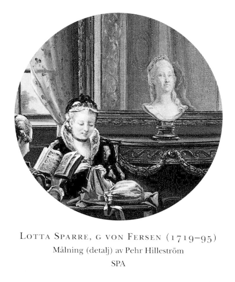 Charlotta (Lotta) Fredrika S: H E Charlotta, Dagbok, 1 (1902); B Hennings, Gustav III som kronprins (1935); R F Hochschild, Memoarer, 3 (1990), s 163; Hyckert, a a, s 322; J Ilmakunnas, Adelsdamen som konsument på 1700-talet (FHT 2004), s 125-134; LeijonhufVud, a a:n 1917, 1918 o 1931; G W Lundberg, La charmante rose (Vision o gestalt, 1957); G Rib-bing, Gustav IILs hustru (1958); dens, Ensam drottning (1959); W Swalin, K M:ts hofs personalhist, 1 (1888).