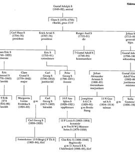Den enda i Sverige ännu fortlevande grevliga grenen av släkten S härstammar från S 3:s bror Gustaf Adolph S (1649–92). Gustaf S deltog i sjöslaget vid Öland 1676, befordrades s å till amirallöjtnant och blev svårt sårad i sjöslaget i Köge bukt 1677. 1678 undersökte han tillsammans med amiralen Erick Siöbladh (bd 32, s 283) möjligheterna att förlägga en flotta till blekingeskären, vilket väsentligt bidrog till beslutet att förlägga den sv flottans huvudstation till denna trakt, där Karlskrona anlades 1680. S befordrades s å till viceamiral och 1690 till amiral. I sitt äktenskap med riksrådet och amiralen Clas Stiernskölds dotter Elisabet Anna blev han svärfar till amiralerna Kornelius Ankarstierna (bd 2) och Carl Ruuth (bd 30) och far till Claes S (1673–1733).