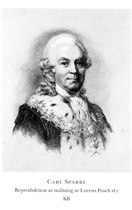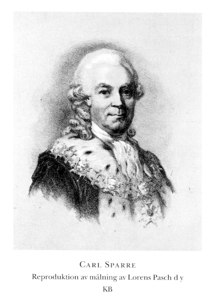 5 Sparre, Carl, halvbrors son till S 4, dp 6 dec 1723 i Sthlm, Svea livg:s grenadjärbataljons förs, d 20 juni 1791 där, Nik. Föräldrar: generallöjtnanten o landshövdingen frih Fredric Henric S (s 709) o Virginia Christina Lilliehök. Volontär vid Livg 39, auskultant i Svea hovrätt o i rådhus- o kämnärsrätterna i Sthlm 39, kavaljer i C G Tessins ambassad till Frankrike 39, kapten vid franskt reg (det sedermera s k Royal Suédois) 41, deltog i svensk-ryska kriget 41–43, sergeant vid Livg 10 febr 42, adjutant hos general C E Lewenhaupt (bd 22) 42, överadjutant hos överste G W Marcks v Würtemberg 43, hos general G F v Rosen (bd 30) 43, fänrik vid Livg 2 maj 43, kaptenlöjtn vid Södra skånska kavallerireg 4 sept 44, ryttmästare där 18 dec 45, volontär i preussiska armén 45, kapten vid Royal Suédois 17 sept 46, överstelöjtn i armén 16 juni 47, major vid Älvsborgs reg 2 maj 48, överstelöjtn där 21 mars 49, deltog i riksdagarna 51/52–55/56 o 65/66–71/72 (led av SU 55/56 o 71/72, ordf i bankodeput 69/70 o 71/72, i tulldeput 71/72), major vid Livg 2 mars 57, deltog i pommerska kriget 57–62, generalkvartermästare o generaladjutant i Pommern 57, chef för krigskommissariatet där 59, överste i armén 22 april 60, överstelöjtn vid Livg 11 febr 61, överste o chef för Jämtlands dragonreg 26 juli 62, landsh i Österbottens län 17 jan 63 (tilltr ej), i Gävleborgs län 20 jan 63, generalmajors n h o v 3 juli 69, led av dir för Frimurarebarnhuset från 3 jan 71, överståth i Sthlm från 22 april 73, led av politikommissionen 73–jan 76, av beredn till försvarsverkets förbättrande maj 74–sept 83, riksråd 11 dec 75–15 maj 89, fullm i Generalassistanskontoret från 26 mars 78, ordf i dir för Strömsholms kanal o slussverksbyggnad från 78, led av kommissionen ang fartygscerter jan–maj 80, kansler för Åbo akad från 24 juli 83, led av uppfostringskommissionen från 83, av kommissionen över Lappmarkens ecklesiastikverk från 84, av utredningskommissionen 88–dec 90, av Rikets ärenders allm beredn från 15 maj 89. – LPS 74, LVA 74, HedLFrKA 76, LFS 81, Serafimerriddare 1 sept 82.