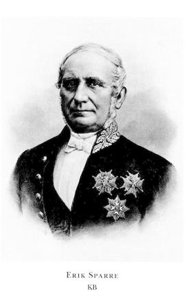 9 Sparre, Erik Josias Filip, kusins sonson till S 7, f 2 mars 1816 i Gävle, d 17 juni 1886 i Vänersborg. Föräldrar: landshövdingen greve Eric Samuel S (s 714) o Catharina Ulrika (Ulla) Montgomery. Elev vid Gävle gymn 29–33, inskr vid UU 22 mars 33,jur-fil ex 12 dec 35, FK 25 maj 36, mag 16 juni 36, jur utriusque kand 21 dec 39, allt vid UU, e o kanslist i kammarexp 28 dec 35, auskultant i Svea hovrätt 5 febr 40, v häradsh 44, deltog i riksdagarna 44/45–65/66 (led av lagutsk 47/48–65/66, ordf där 50/51–65/66), adjung led i Svea hovrätt 49, assessor där 26 juni 50, led av svensk-norska komm ang verkställighet av domar i Sverige o Norge aug 55–aug 56, av komm ang ny konkurslag mars 58–juli 59, landsh i Älvsborgs län från 16 dec 58, ordf i Älvsborgs läns södra hushålln:sällsk från 59, i Borås järnvägs ab 61–66, i Uddevalla-Vänersborg-Herrljunga järnvägs ab 63, i Älvsborgs läns landsting 63–70 o 72–85, v ordf där 71, ordf i styr för Dalslands kanal ab 64–75, led av komm ang stadganden för ägande-, pant- o nyttjanderätt till fastighet febr 65–juli 67, led av FK 67–69 o AK 70–86 (ordf i lagutsk 67–71 lagt, 72 o 74–77), led av komm ang ny utsökn:lag juni 68–juni 71, ordf i styr för Dalslands järnvägs ab 73, VD där 73–76, ordf i Varberg-Borås järnvägs ab 77, i komm ang sjölagsbestämmelser till förekommande o inskränkande av olyckor till sjöss maj 77–dec 78, i Sthlm-Västerås-Bergslagens trafik ab 80–81, i Älvsborgs läns norra hushålln: sällsk från 83. – LLA 70.