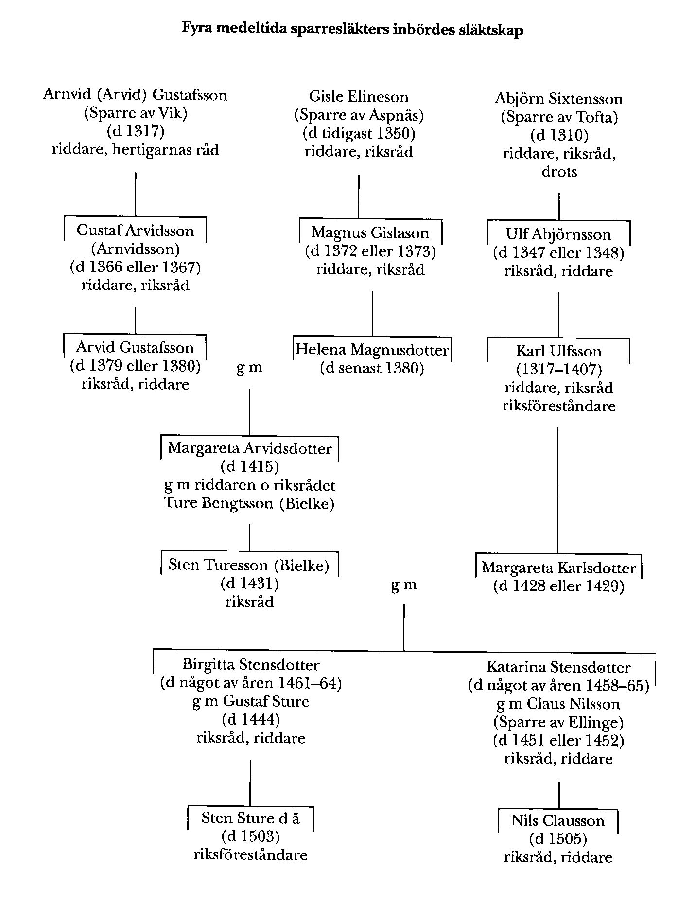 Källor o litt: Allmänt: S O Brenner, Nachkommen Gorms des alten (1964); H Gillingstam, S av Aspnäs (ÄSF 1:2, 1965); J Liedgren, Om medeltidsätter med sparre i skölden (Släkthist forum 1986:3), s 20 f; J Ra-neke, Sv medeltidsvapen, 1 (1982), s 113; SMoK; E o R Sparre, Medeltida Spärrar (2003).