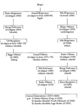 Fader Birgerssons sonson Ulf Bengtsson (d något av åren 1405–12) var bland det 20-tal frälsemän som 1388 i Nyköping samtyckte till Bo Jonssons (Grip; bd 5, s 82) testamentsexekutörers hyllning av drottning Margareta. Han blev riddare 1391 eller 1392, och namnes bland beseglarna av Nyköpings recess 1396. Åtminstone 1391–1403 var han häradshövding i Gästrikland. U:s sätesgård var Lagmansö i Vadsbro sn, Södermanland, vilken han kommit i besittning av genom sitt äktenskap. Han blev svärfar till riksrådet Gustaf Algotsson (Sture).