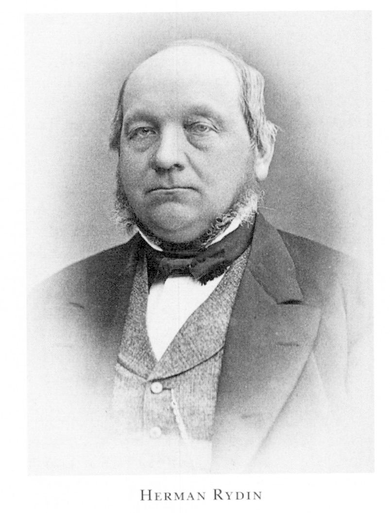 Rydin, Herman Ludvig, f 13 aug 1822 i Jönköping, Kristina, d 22 nov 1904 i Uppsala. Föräldrar: handlanden o rådmannen Johan Samuel R o Engel Catharina (Katrina) v Sydow. Elev vid Växjö gymn 38–40, inskr vid UU 30 okt 40, FK12 juni 47, mag 16 juni 48, jur utr kand 14 juni 51, allt vid UU, auskultant i Svea hovrätt 20 sept 51, e o notarie där 7 okt 51, adjunkt i nationalekonomi o administrativ rätt vid LU 20 dec 53, v häradsh 3 mars 54, prof i sv statsrätt, kyrkorätt, krigslagfarenhet o folkrätt vid UU 13 dec 5531 jan 90, led av stadsfullm iUppsala 6366, av Uppsala läns landsting 63-65 o 69-88, v ordf 84-85, ordf där 86-88, led av FK 67-75 o av AK 7678 o 82-90 (led av KU 6775, 77 o 88-90, v ordf där 8890, led av särsk utsk 68 o 73, av tillf utsk 72 o 83, statsrevisor 7981, led av talmanskonferensen 88-90, av nya lantmannapartiets niomannaråd 88-90), led av förberedande skattejämkn:komm juli 75-okt 76, rektor för UU 7576, led av skatteregleringskomm juni 79aug 81, av allm kyrkomötet 88. - Jur hedersdr vid LU 28 maj 68, LVS 82.
