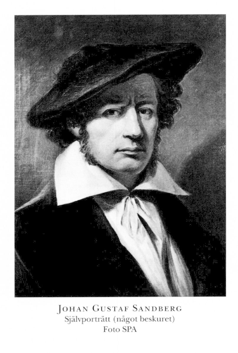 I likhet med en del andra konstnärer ur sin generation, t ex Fredrik Westin och Carl Johan Fahlcrantz (bd 15), förblev S hela sitt liv bosatt i Sthlm, frånsett några kortare besök i Khvn. Först hade krigen på kontinenten hindrat honom från utlandsstudier. Senare krävde hans roll som familjeförsörjare andra inkomster än vad ett resestipendium kunde ge. Han satsade därför istället på sv genre- och historiemåleri, ofta i stort format. S trivdes med sitt borgerligt stillsamma liv, som han tillbringade tillsammans med sin hustru och sina tre begåvade döttrar. "Jag är lycklig med min musikaliska lilla hustru och bryr mig förresten om ingen utom min konst", skrev S vid ett tillfälle till sin vän Fogelberg (Ep F4, KB). Det Sandbergska hemmet blev efterhand också en av de musikaliska medelpunkterna i Sthlm. Till dem som ofta var gäster i familjen under 1840-talet hörde Erik Gustaf Geijer.
