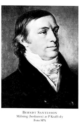 1 Santesson, Berndt Harder, f 15 mars 1776 i Örgryte, Göt, d 26 aug 1862 i Lerdala, Skar. Föräldrar: grosshandlaren o skeppsredaren Gustaf Bernhard (Berndt) S o Elisabeth Dorotea Matsen. Elev vid herrnhutiska uppfostr:anstalten i Christi-ansfeld, Slesvig, 82–86, kontorist på familjens handelskontor i Gbg 91, grosshandlare i firma G B Santessons söner från 98, dir i Ostindiska kompaniet 09–13, allt i Gbg, led av borgarståndet vid riksdagarna 09–10, 12–15 o 23–35 (led av särsk utsk 09–10, av bankoutsk 09–10, av bevilln:utsk 09–10 o 12, av hemliga utsk 09–10, 12 o 34–35, av andra särsk utsk 12, av KU 12 o av statsutsk 15 o 23–35), led av komm ang igångsättande av arbetet på Göta kanal 31 jan-maj 10, kommerseråds n h o v 7 maj 10, led av dir för Götha canal-bolag 28 maj 10–18 mars 33, 20 mars 33–20 jan 34 o 16 febr 36–28 sept 38, v ordf i dir 16 dec 29–28 jan 30, ordf där 28 sept 38-24 april 39, dir för Götha canal-bolags diskont i Gbg 30 maj 10–15 sept 18, led av komm ang tullen på spannmål okt 29–jan 30, av komm ang segelleden mellan Vänern o havet mars–aug 35, disponent för Motala verkstad 37–39. - LVVS 08.