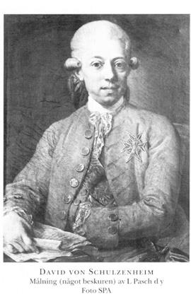 von Schulzenheim, David (före adl Schultz), f 16 (g st; Hagberg), dp 19 mars 1732 i Amsberg, Dalarna, d 24 april 1823 i Sthlm, Klara. Föräldrar: regementsfältskären Jacob Schultz o Maria Magdalena v Husum. Inskr vid univ i Königsberg 26 sept 47, disp där 50, inskr vid UU 25 nov 51, anatomie prosektor där 51–54, med dr där 31 okt 54, reste i Europa 54–56, läk vid Frimurarebarnhuset i Sthlm 59, prof o direktor i barnförlossn:konsten 22 juni 61–30 nov 78, intendent o förste läkare vid Koppympn:huset i Sthlm 65–78, assessor i Collegium medicum 18 nov 66–78, k arkiater 13 april 69 (tilltr ej), adl 6 febr 70 (introd 73), intendent vid Allm barnbördshuset i Sthlm 75–78, deltog i riksdagarna 78/79–09/10 o 12–23 (led av bankoutsk 89, av hemliga utsk 00, av statsutsk 09/10 o 12–18), revisor i Riksbanken 92, 99 o 05, preses i Collegium medicum 16 maj 09 (från 13 ordf i Sundhetskoll)–15 jan 22, led av Kommissionen över tabellverket 09–22, förste arkiater hos konungen 21 aug 09–22, led av riksbanksfullm 10, av dir för Frimurarebarnhuset i Sthlm 17 juni 10–17, av komm för allm läkarvården maj 10–12, av komm ang allm fattigvården i riket juni 10–juni 11, ordf i komm ang den Osbeckska kurmetoden maj–dec 11, kir mag 18 sept 13, erhöll lika rang med presidenter i kollegierna 6 dec 15, led av K direktionen över allm barnbörds- o koppympn:inrättmen i Sthlm 16–22, av Riksens ständers tryckfrihetskomm 17–18. – LVA 60, LPS 77, LLA 12, led av flera uti lärda sällsk.