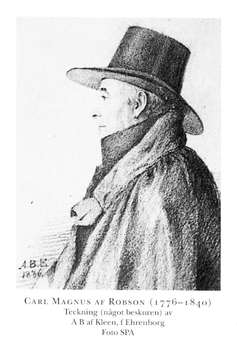 Son till Carl Magnus R var Carl Magnus R (1776–1840), som 1819 adlades med namnet Robson men som enligt k resolution 1822 skulle skriva sig af Robson. Han blev student i Uppsala 1788 och avlade jur ämbetsexamen 1794 för att bli auskultant i Bergskollegium 1795. Vice notarie där 1796 blev han ordinarie 1799 och erhöll protonotaries titel 1803. Dessförinnan hade han företagit resor i Bergslagen 1792 och i Norrland och Norge 1796. 1797–1800 vistades R tidvis i Norrbotten, där han för bergsrådet S G Hermelins (bd 18) räkning ledde kartläggningen av dennes brukskomplex. R blev 1800 e o notarie i Jernkontoret, 1801 notarie och kanslist, och 1803-26 var han dess sekreterare och ombudsman. I Bergskollegium blev han sekreterare 1805 och kvarstod som sådan till 1816, då han intog det säte som bergsråd till vilket han utnämnts 1814. Vid sin avgång 1833 fick R titeln vice president. Han var borgarståndets sekreterare vid de urtima riksdagarna 1815 och 1817–18 och var en av stiftarna av Svenska jägareförbundet 1831 och dess vice ordförande. R inköpte Vissboda av fadern 1803 men tvingades 1808 sälja bruket till sin blivande svärfar Olof Burenstam (bd 6, s 740). Efter dennes död 1821 återbördade R Vissboda. Genom sonen i detta äktenskap Olof Albert Robson (1821–92), disponent på Aspa i Hammar, Ör, och ledamot av riksdagens FK 1879–84, fortlever ätten af Robson. Hans son Olof August Rutger Robson (1854–1936), disponent och landstingsman, var far bl a till majoren Carl af Robson (1900–87), som 1980 blev ättens huvudman och adelsman. Förutom den adliga linjen fortlever (1998) även tre ofrälse linjer liksom en linje på kvinnosidan.