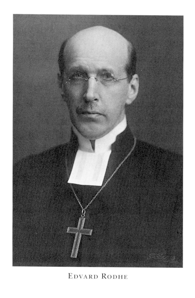 2 Rodhe, Edvard Magnus, son till R 1, f 17 dec 1878 i Lund, d 12 april 1954 i Skara. Mogenhetsex vid Gbgs h latinlärov 3 jan 96, inskr vid LU 4 sept 96, FK 14 dec 98, e o amanuens vid LUB 11 mars 99–7 sept 01, teol fil ex 31 maj 01, TK 31 maj 04, disp 30 maj 05, doc i kyrkohist 14 sept 05, allt vid LU, lär vid Lunds privata elementarskola ht 05–ht 08, prästv i Gbg 7 jan 06, lär vid Lunds fullst lärov:s för flickor gymn läsåren 08–12, prof i prakt teologi vid UU o kh i Gamla Uppsala 29 mars 12, TD vid LU 31 maj 12, led av styr för Samariterhemmet i Uppsala 13–25, ordf i styr för Lindska flickskolan där 15–19, kontraktsprost i Vaksala kontrakt, Upps, 25 sept 18, led av evangeliebokskomm febr 19–okt 20 o jan 21–dec 22, prof i prakt teologi med kyrkorätt vid LU 27 nov 19–1 maj 25, prebendekh i Husie, Malm, 19–april 23, prebendedomprost i Lund 1 maj 23, led av komm ang kvinnors tillträde till statstjänst juni 21–jan 23, biskop i Lunds stift 17 april 25–31 dec 48, LU:s prokansler 17 april (tilltr 1 maj) 25–48, led av komm ang ny kyrkohandbok nov 25–aug 26, av granskn: nämnden för bestämmande av läroböcker för kristendomsundervisn:en 28–34, av Sv kyrkans missionsstyr 30–41, av Sv kyrkans sjömansvårdsstyr 33–41, av Kulturrådet 35–44, ordf i komm för överarb av förslag till psalmbok för Sv kyrkan juni–sept 36, i Lutherska världskonventets sv landskomm 37, i kyrkomötesutredn dec 44–mars 46. – LHVL 20, HedLFS 28, fil hedersdr vid LU 31 maj 41, HedLVHAA 48.