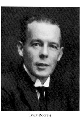 1 Rooth, Ivar, f 2 nov 1888 i Sthlm, Hedv El, d 27 febr 1972 i Lidingö. Föräldrar: föreståndaren för penninglotterierna Otto Daniel R o Ellen Hertzman. Studentex vid H reallärov å Norrmalm, Sthlm, 17 maj 06, inskr vid UU 31 maj 06, JK där 31 jan 11, sekr i Verdandi 08–09, studerade vid handelshögskolan i Berlin 11–12, e o notarie i Sthlms rådhusrätt o i Svea hovrätt 11, i Uppsala läns norra domsaga 12–14, bitr ombudsman i ab Sthlms handelsbank 14, förest för bankens remboursavd 15, ombudsman i Finansab 16–19, dir:assistent i Sv emissionsab 19, bitr dir o ombudsman i Sthlms intecknings garanti ab (SIGAB) 20–29, led av styr där 20–29, sekr o ombudsman i direktionen för stiftelsen Sunnerdahls hemskolor på landet 20–29, ensamutredare ang omsättn:beskattn juni 21–dec 22, led av styr för Sv turistfören (STF) 22–33, av Sveriges liberala partis verkst utsk 23–27, av monopolkontrollutredn nov 26–nov 28, fullm o förste deputerad i Riksbanken (riksbankschef) 14 mars (tilltr 1 maj) 29–4 dec 48, led av styr för ab Kreditkassan av år 1922–29, av styr för Internat regleringsbanken (Bank for International Settlements), Basel, 31–33 o 37–49, ordf i Nationalekon fören 35, led av nämnden för Konjunkturinst 37, ordf där 38, ordf i styr för Valutakontoret 40, led av valutasakk maj–nov 43, av 1945 års bankkomm mars 45–april 49, av investeringskomm för FN:s pensionsfond 47–61, överrevisor i Järnvägsstyr 49–51, managing director i Internat valutafonden (International Monetary Fund), Washington, 51–56, led av valutastyr i Kuwait 60–62. – Fil hedersdr vid UU 30 maj 62.