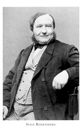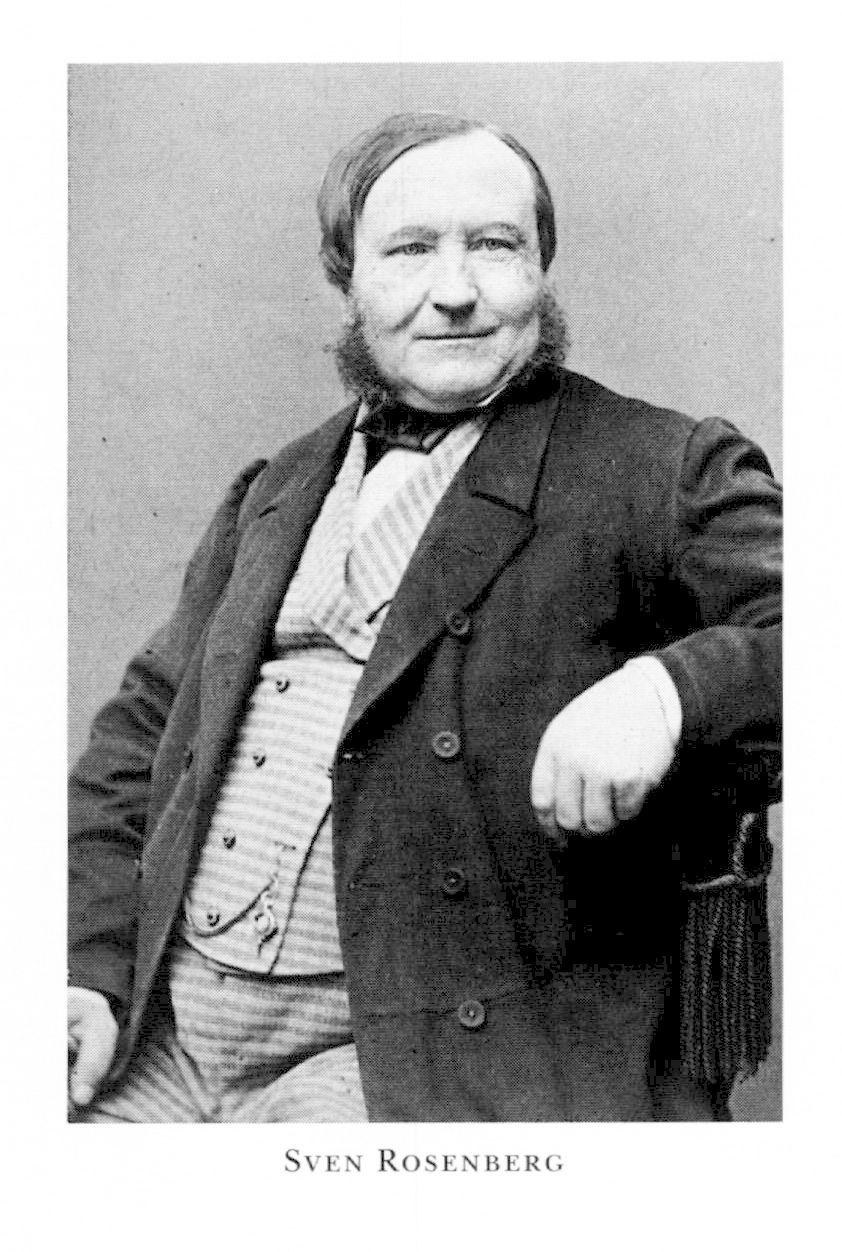 1 Rosenberg, Sven Persson, f 16 jan 1811 i Mörrum, Blek, d 22 april 1895 i Östra Ljungby, Krist. Föräldrar: kronobåtsmannen Pehr R o Märta Persdtr. Skolmästare i fattigskola i Asarum, Blek, 30, lär i växelundervisn:skola i Fjälkinge, Krist, 36, sekr i nykterhetsfören där 37, ordf i missionsfören där 38, inskr vid Skolmästarsem:et i Lund 24 aug 39, folkskollär-, klockar-, kantors- o organistex där 27–28 sept 39, folkskollär samt vik klockare o organist i Västra Karup, Krist, 40, folkskollär i Östra Ljungby, Krist, 46–68, klockare o kantor där o i Källna, Krist, från 46, led av bondeståndet vid riksdagarna 59–66 (led av lagutsk 62–66), av AK 67–69 (led av lagutsk), av styr för Norra o Södra Åsbo häraders sparbank 62, av komm ang ordnandet av pensionsväsendet för folkskollärarna samt deras änkor o barn april–dec 64, av Kristianstads läns landsting 65, 67–82 o 84, v ordf där 71, 76–77 o 80, led av Kristianstads läns hushålln:sällsk:s förvaltn:utsk 70–80, av styr för Östra Ljungby o Källna socknars sparbank 74, ordf där, led av allm kyrkomötet 83. G 2 juli 1830 i Mörrum m Kerstin Olasdtr, f 14 sept 1804 där, d 16 aug 1884 i Östra Ljungby, dtr till åbon Ola Gisselson o Hanna Truedsdtr.