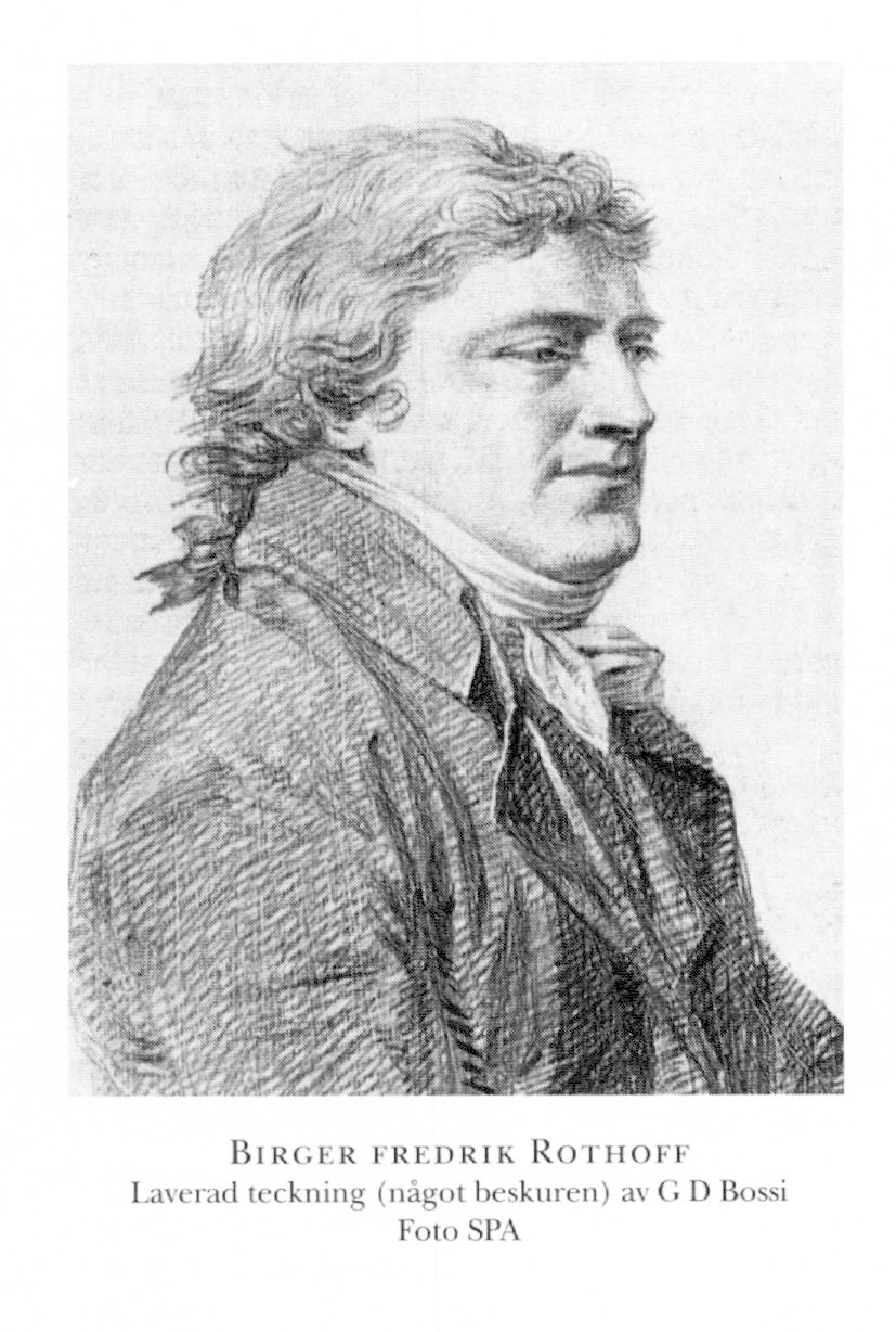 3 Rothoff, Birger Fredrik, före adl Rothof, sonsons sonsons son till R 1, f 10 mars 1759 i Eskilstuna, d 3 maj 1831 i Fors, Söd. Föräldrar: brukspatronen Isak Rothof o Christina Ström. Inskr vid UU 20 juni 70, bergsex 29 maj 78, disp där 6 juni 78, auskultant i Bergskoll 23 juni 78, ämnessven i VA 6 mars 79, tf proberare i Bergskoll 5 dec 80, e o notarie där 14 dec 81, brukspatron på Karl Gustafs stads järn- o stålmanufakturverk vid Eskilstuna 82–12, förlagsman för Fristaden i Eskilstuna 99–19, deltog i riksdagarna 09–10, 10 urt o 12–15 (led av statsutsk 09-10, av hemliga utsk 10 urt, av KU o av särsk utsk 15), bergsråds titel 29 juni 09, bergsråd med säte o stämma i Bergskoll 30 april 10, led av komm ang undersökn av Sala silvergruva mars 10-april 17, adl 19 mars 12, ägare av Lagersberg, Fors, Söd, från 14, led av komm för undersökn av Stora Kopparbergs bergslag sept 15–juni 18. – LPS 01, LVA 12, LLA 12, LFS 15.