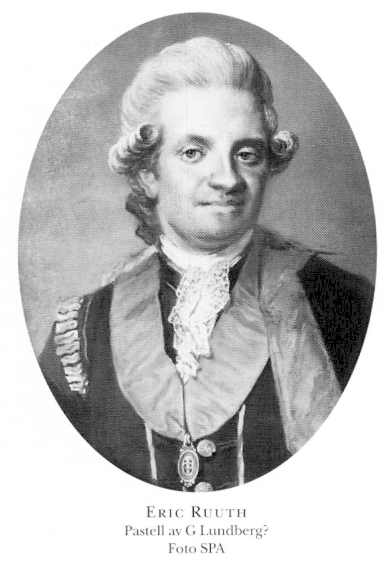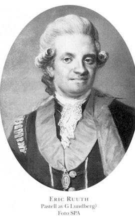 Ruuth, Eric, f 24, dp 26 okt 1746 (g st) i Sthlm, Skeppsh, d 25 maj 1820 där, Klara. Föräldrar: amiralen riksrådet Gustav R o frih Ebba Christina Siöblad. Kadett vid Amiralitetskadettkåren i Karlskrona 2 febr 57, ämnessven i VA 17 dec 57, fänrik vid Livgardet till fot 8 mars 64, avsked med kaptens titel 10 mars 68, frih 29 jan 77, deltog i riksdagarna 78–09/10 o 12–18 (lantmarskalk 92, led av statsutsk 09/10, av bevilln:utsk 12, av särsk utsk 15), överstes titel 21 febr 81, förste kavaljer hos hertig Karl 22 febr 81, revisor i Riksens ständers bank 82, led av tulldir 8 sept 85–28 nov 86, förste stallmästare hos hertig Karl 7 okt 86, statssekr vid handels- o finansexp 27 nov 86–4 okt 90, tf president i Statskontoret 27 nov 86–13 okt 90, K M:ts ombud i Diskontkompaniet (från 1 sept 87 Generaldiskontkontoret) 28 nov 86, i Västindiska kompaniet 25 jan 87, ordf i dir där 18 juli 87–6 aug 95, ordf i dir över den Allm spannmålsmagasinsinrättn:en 3 mars 88, led av utredn:kommissionen för flottornas o varvens behov 16 mars 88 o för förnödenheter till krigsmakten 26 juni 88, led av Rikets allm ärenders beredn 15 maj 89–1 maj 93, av tf regering under kungens frånvaro 1 juni–5 dec 89, 25 mars–6 sept 90 o 20 maj–7 aug 91, K M:ts ombud i dir för det nya Riksgäldskontoret 26 okt 89–19 okt 90, president i Kammarkoll 4 okt 90, ståth över Drottningholms o Svartsjö slott o län 4 okt 90, tillika över Ulriksdals o Karlbergs slott o kungsgårdar samt Haga lustpark 26 okt 90, greve 24 febr 92, led av Allm statsberedn 20 april 92, en av rikets herrar 7 sept 92, generalguvernör i Pommern o Rügen o kansler för univ i Greifswald 7 sept 92–20 apr 96, ordf i visitationskommissionen i Pommern 9 maj 99–18 april 00, överstemarskalk hos drottn Hedvig Elisabeth Charlotta 1 aug 12–18, ägde eller disponerade bl a Marsvinsholm i Balkåkra, Malm, Gundralöv (från 10 Ruuthsbo fideikommiss) i Bjäresjö, Malm, Källunda i Kärda, Jönk, Karsholm i Österslöv, Krist, Bollerup i Bollerup, Krist, Eriksberg i Åryd, Blek, Ulvsunda med lergodsfabrik i Bromma, Sth, "Ruuthska bruket" (lergodsfabrik o gjuteri) i Helsingborg samt Skånska stenkolsverket vid Höganäs. – LFS 75, LPS 77, Serafimerriddare 21 nov 91, LVA 02 (preses 13), HedLLA 12.
